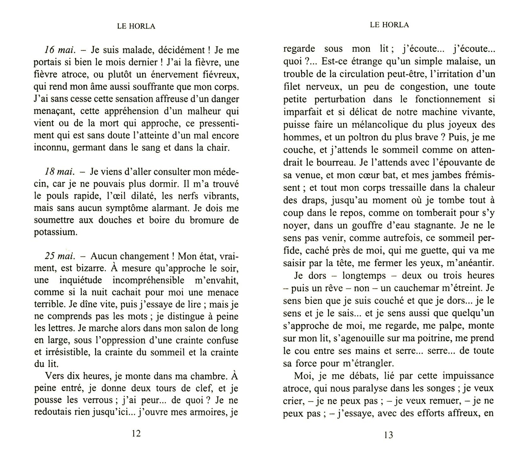 Mais Le Horla, journal d'un fou, demeure l'oeuvre d'un artiste au sommet de son art, une des plus troublantes de la litterature fantastique.