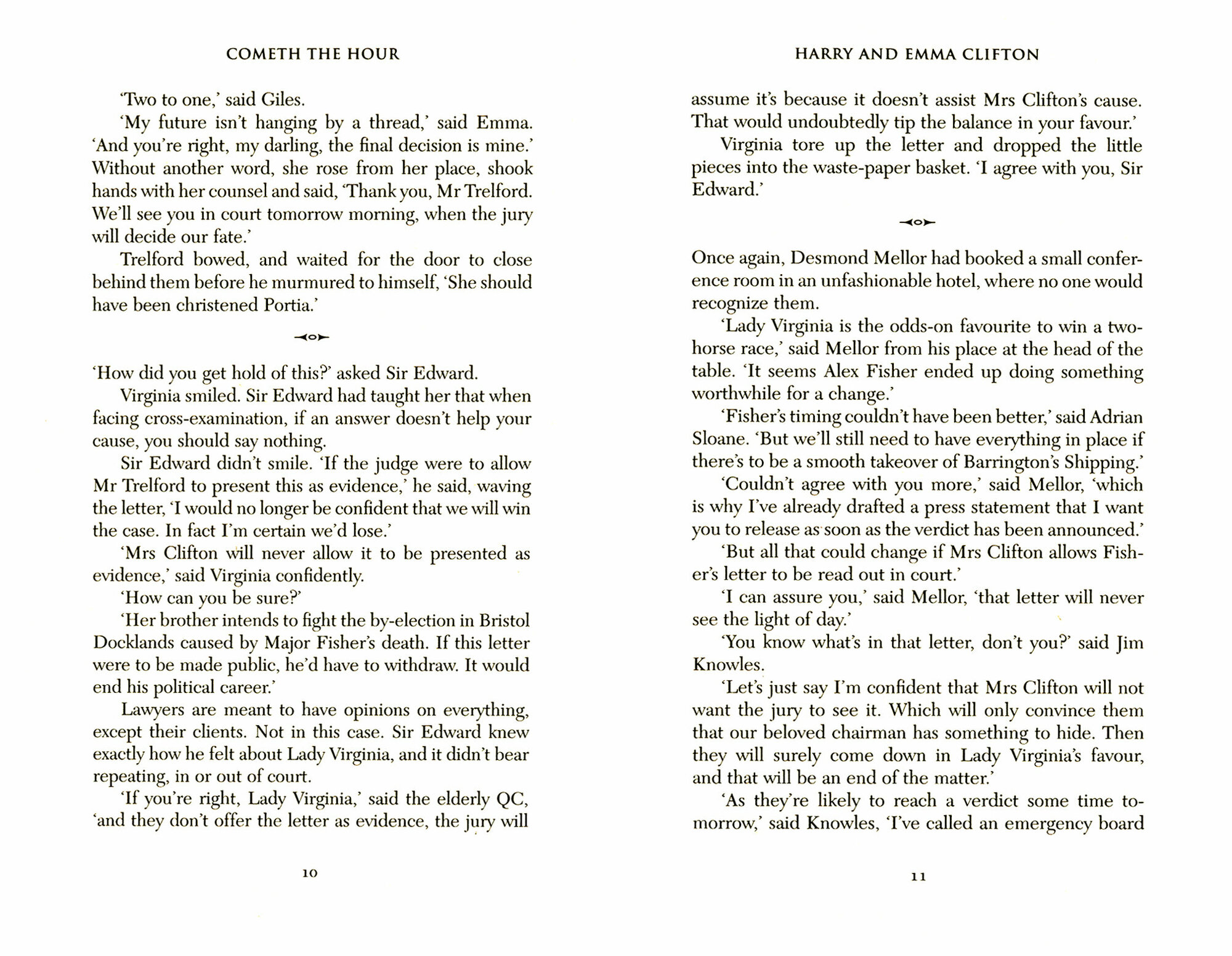 Cometh the Hour opens with the reading of a suicide note, which has devastating consequences for Harry and Emma Clifton, Giles Barrington and Lady Virginia.