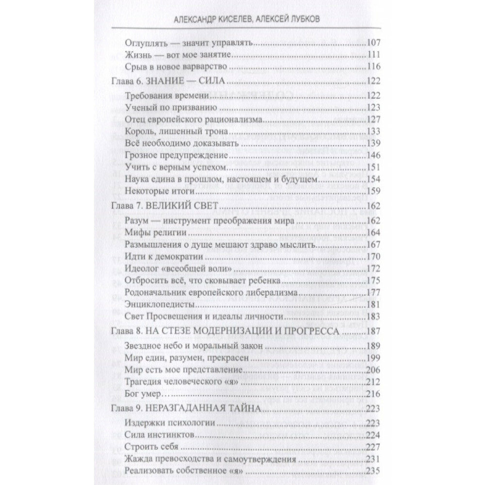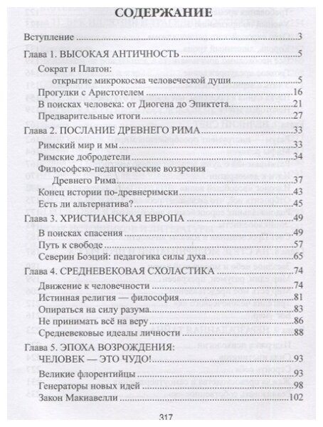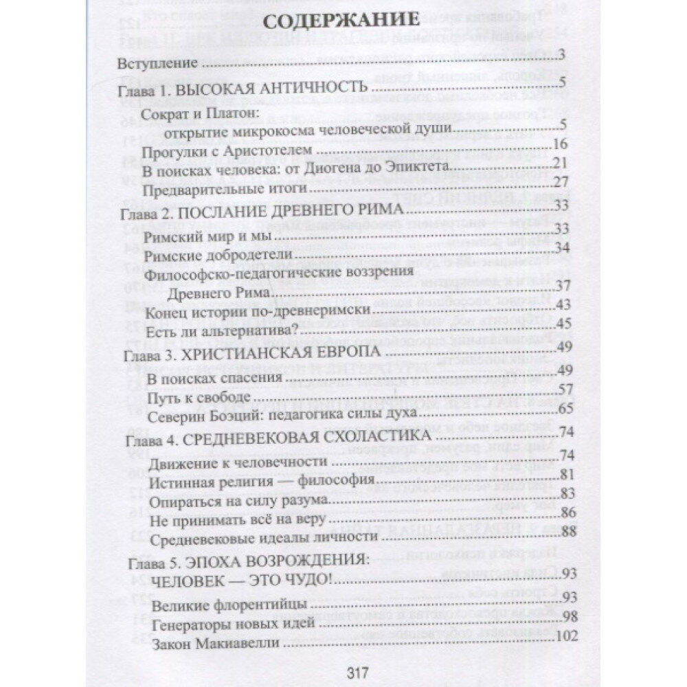 Названия глав книги, охватывающих многовековое развитие человечества, говорят сами за себя: «Высокая Античность», «Послание Древнего мира», «Христианская Европа», «Средневековая схоластика», «Эпоха Возрождения: человек — это чудо» и т.д.