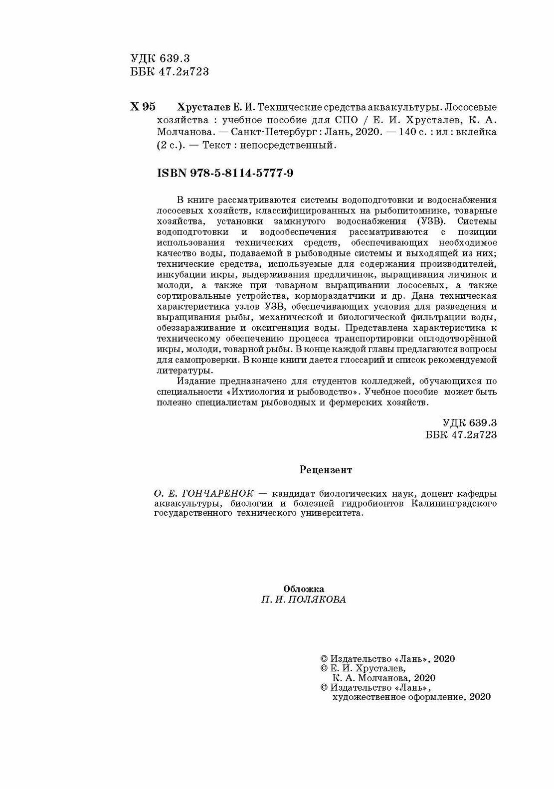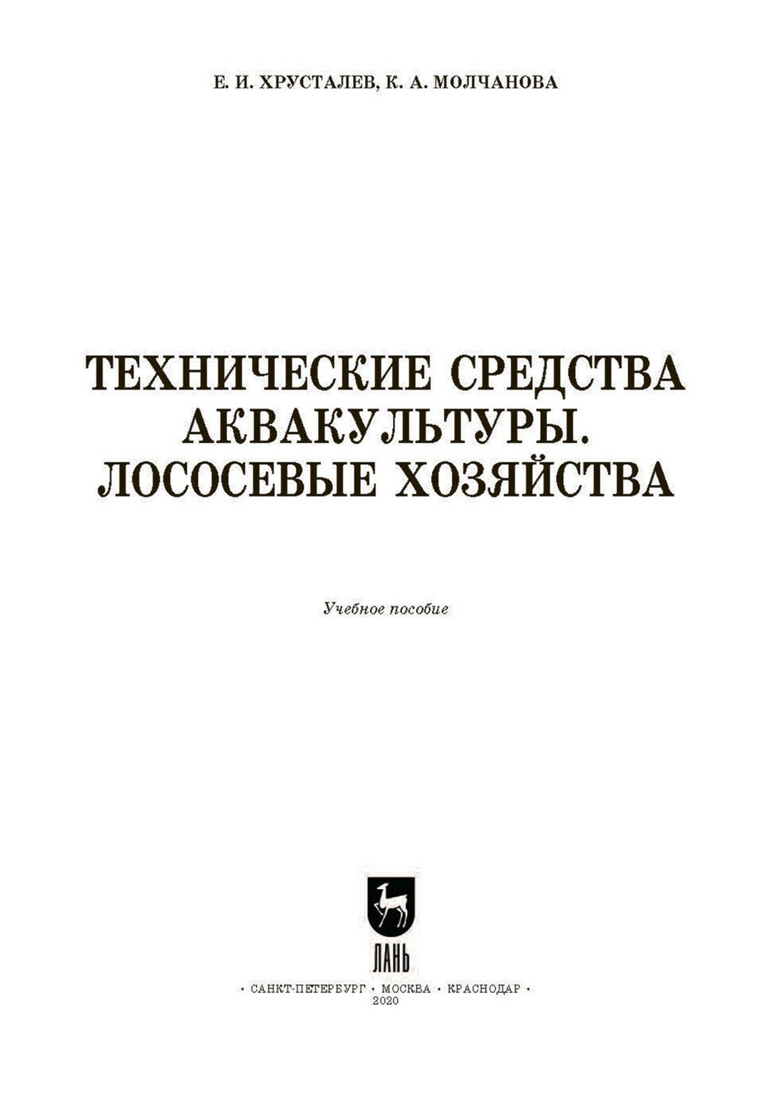 Технические средства аквакультуры.Лосос.хоз-ва.СПО (Хрусталев Евгений Иванович, Чебан Ксения Андреевна); Лань, 2020