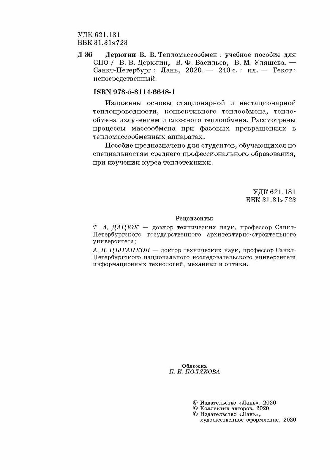 Тепломассообмен.Уч.пос.СПО (Вера Михайловна Уляшева, Владимир Филиппович Васильев, Виктор Владимирович Дерюгин); Лань, 2020