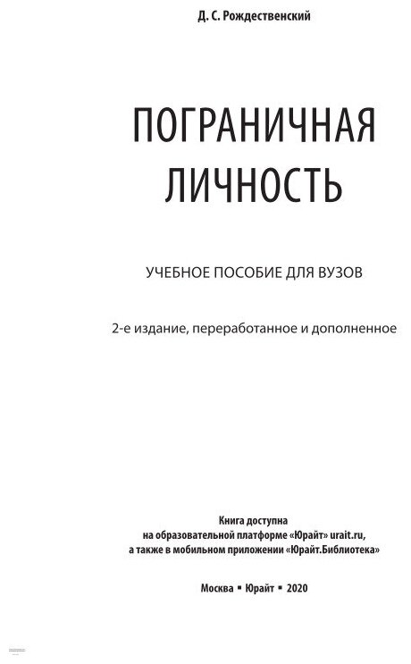 Психология пограничных состояний. Пограничная личность 2-е изд. пер. и доп. Учебное пособие для вузов (Дмитрий Сергеевич Рождественский); ЮРАЙТ, 2019