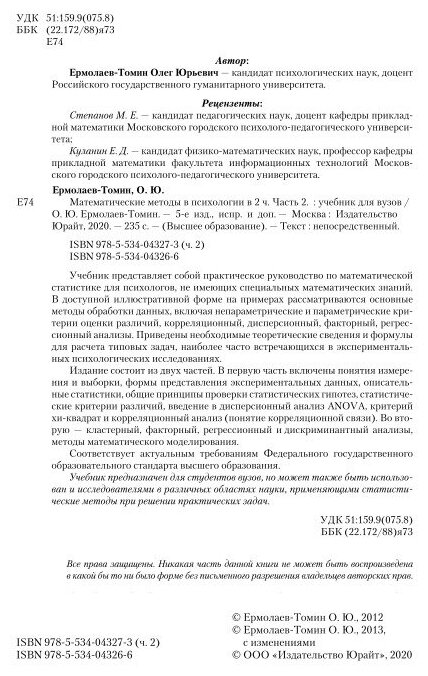 Математические методы в психологии в 2 ч. Часть 2. 5-е изд. испр. и доп. Учебник для вузов (Олег Юрьевич Ермолаев-Томин); ЮРАЙТ, 2020
