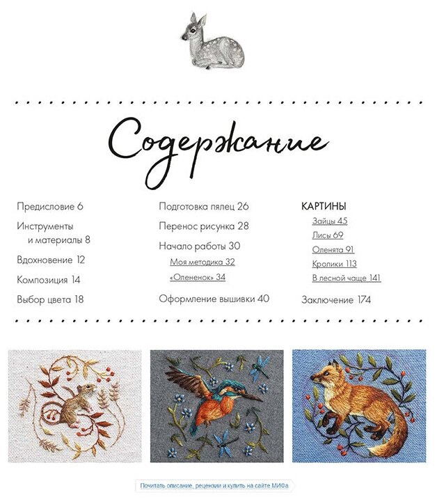 Вторая часть книги - галерея работ Хлои. Вы увидите каждый проект - от замысла до завершения, что, несомненно, воодушевит вас на создание собственных миниатюр. Вдохновитесь самыми популярными темами Хлои: лисы, олени, кролики, зайцы, барсуки и растения. Автор понятно объясняет различные нюансы: чем молодые животные отличаются от взрослых, как изобразить мордочку и сделать орнамент. Также она дает советы по оформлению готовой работы.