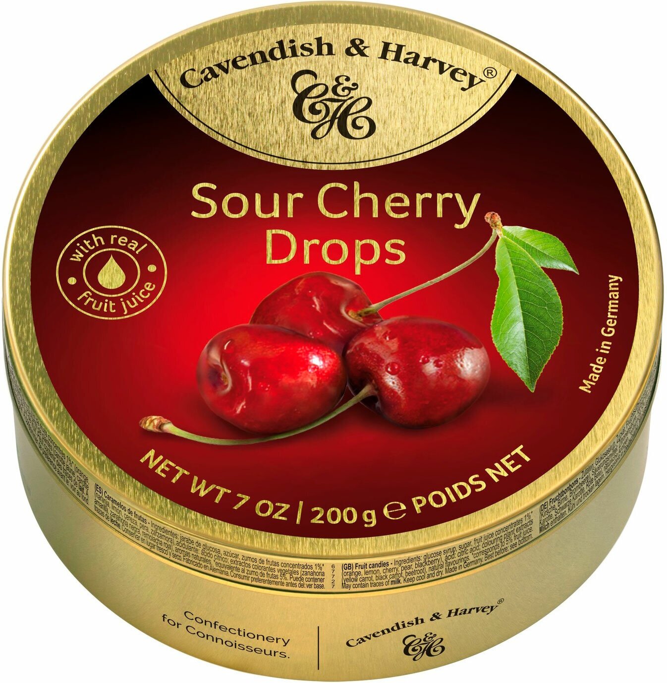 Описание товара:Карамель леденцовая торговой марки "Cavendish & Harvey". Сахаристые кондитерские изделия. Леденцы с фруктовым соком Sour Cherry.Состав товара:Глюкозный сироп, сахар, концентрат вишнёвого сока (1%), регулятор кислотности лимонная кислота, экстракт свеклы, ароматизаторы.