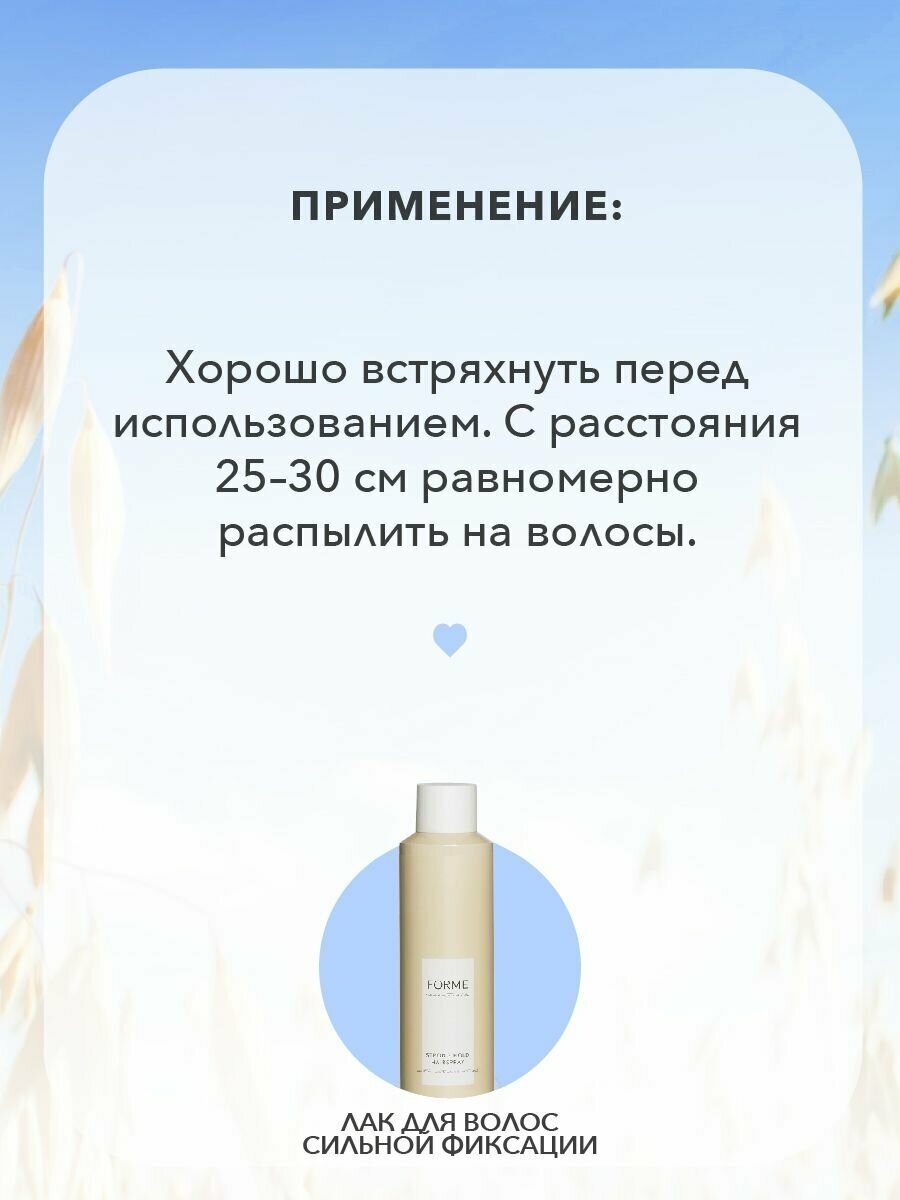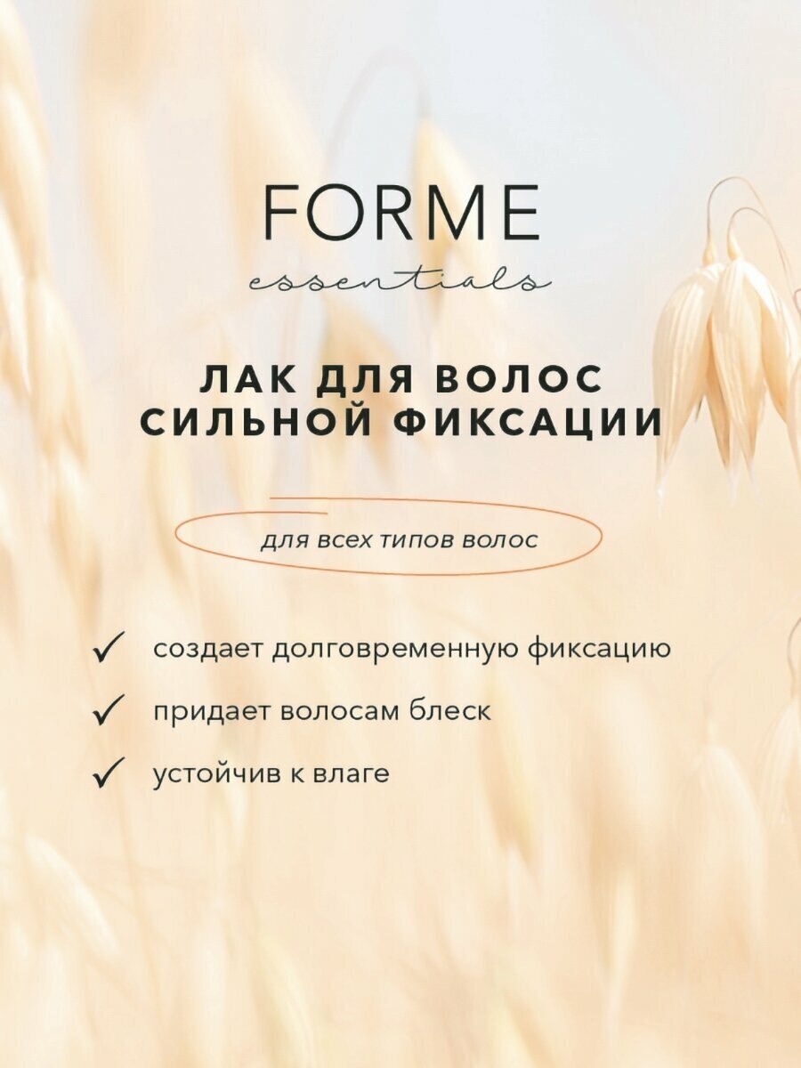 | Полное наименование | Лак для волос FORME Essentials Strong Hold Hairspray сильной фиксации 300 мл |