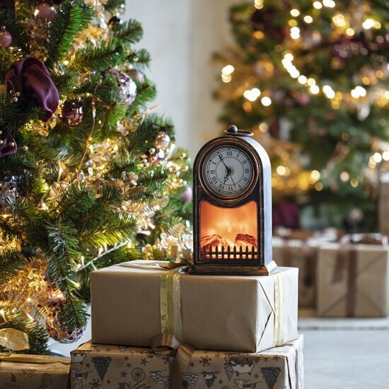 Светодиодный камин с эффектом живого огня ?Старинные часы? в корпусе бронзового цвета ? прекрасный подарок к любому празднику и уникальное интерьерное украшение, которое создано, чтобы дарить ощущение уюта. В изделии предусмотрено 2 способа питания:от кабеля micro USB или от 2 батареек типа С. Композиция из медленно тлеющих поленьев подсвечивается экономичными безопасными диодами, которые имитируют настоящее пламя. Камин не нагревается, не выделяет дым, поэтому совершенно безопасен для людей иокружающих предметов.