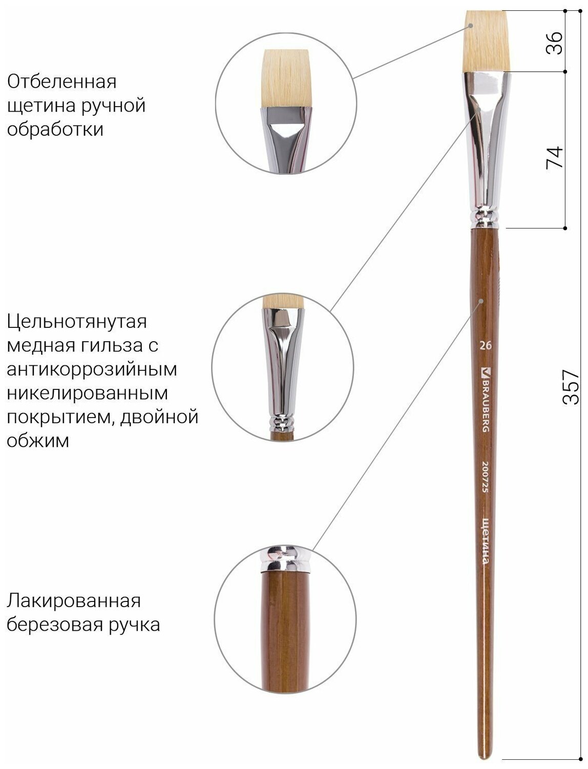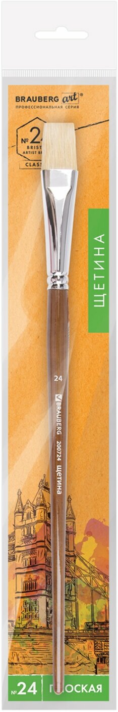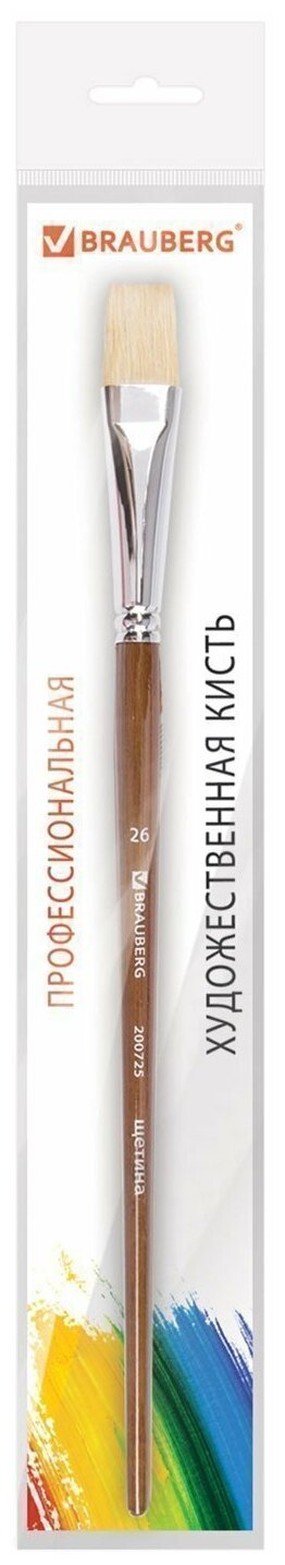 Кисть художественная профессиональная "Art Classic" щетина плоская №26 длинная ручка Brauberg Кисть художественная профессиональная Art Classic щетина плоская №26