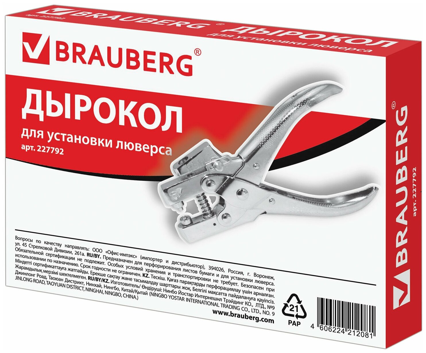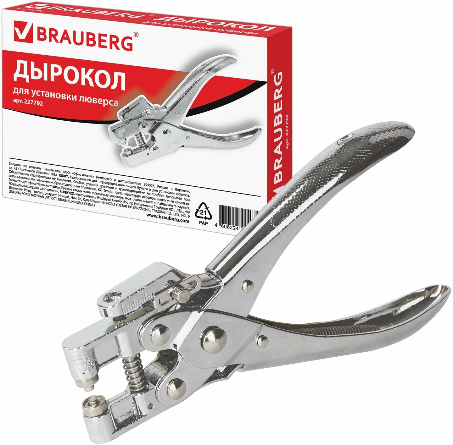 Металлический дырокол BRAUBERG Дырокол на 1 отверстие для люверса HL-1 до 30 листов