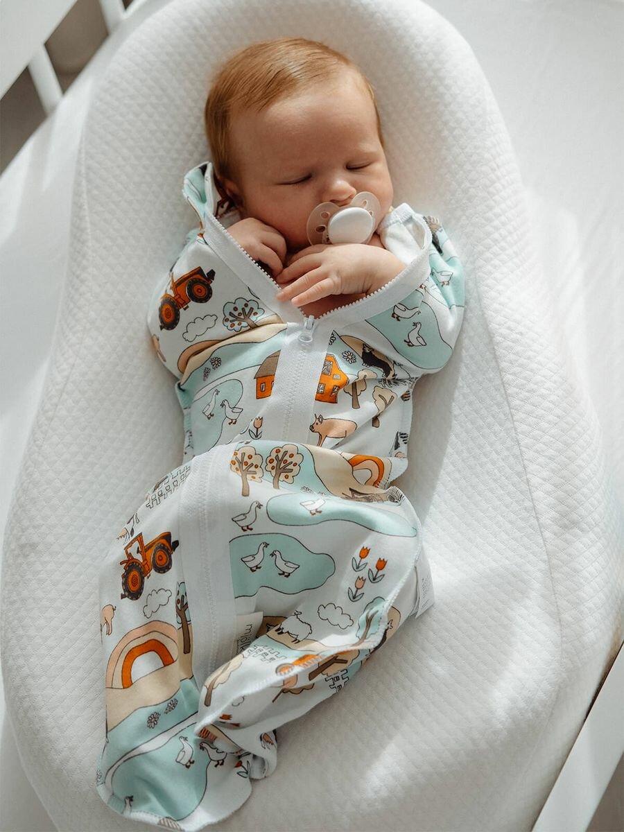 Пеленальный кокон Mjolk - необходимая вещь для малыша до года. Кокон обеспечивает свободное пеленание, ребёнок может двигать ручками и удобно свернуться калачиком во сне, но будет спать крепче без возможности распеленаться. Изделие выполнено швами наружу, молния не соприкасается с кожей, а у шеи защищена трикотажным языком. Два замка на молнии позволяют сменить подгузник, не разбудив малыша. Изготовлен кокон из 100% трикотажного хлопка. Ткань нежная и плотная, не вызывает аллергии, тянется и дышит, простая в уходе. Шапочка в комплект не входит, её можно приобрести отдельно. Чтобы сохранить эффект пеленания, рекомендуем брать коконы по размеру. Подобрать подходящий поможет длина изделия по спинке: S (3-6 кг) - (0-3 мес.) длина 58 см; M (6-9 кг) - (4-7 мес.) длина 68 см; L (9-12 кг) - (8-12 мес.) длина 80 см. Перед использованием обязательна предварительная машинная стирка при 40 градусах.