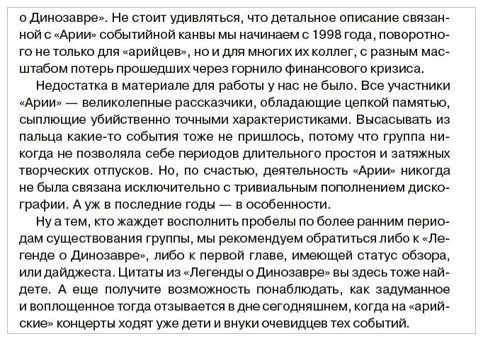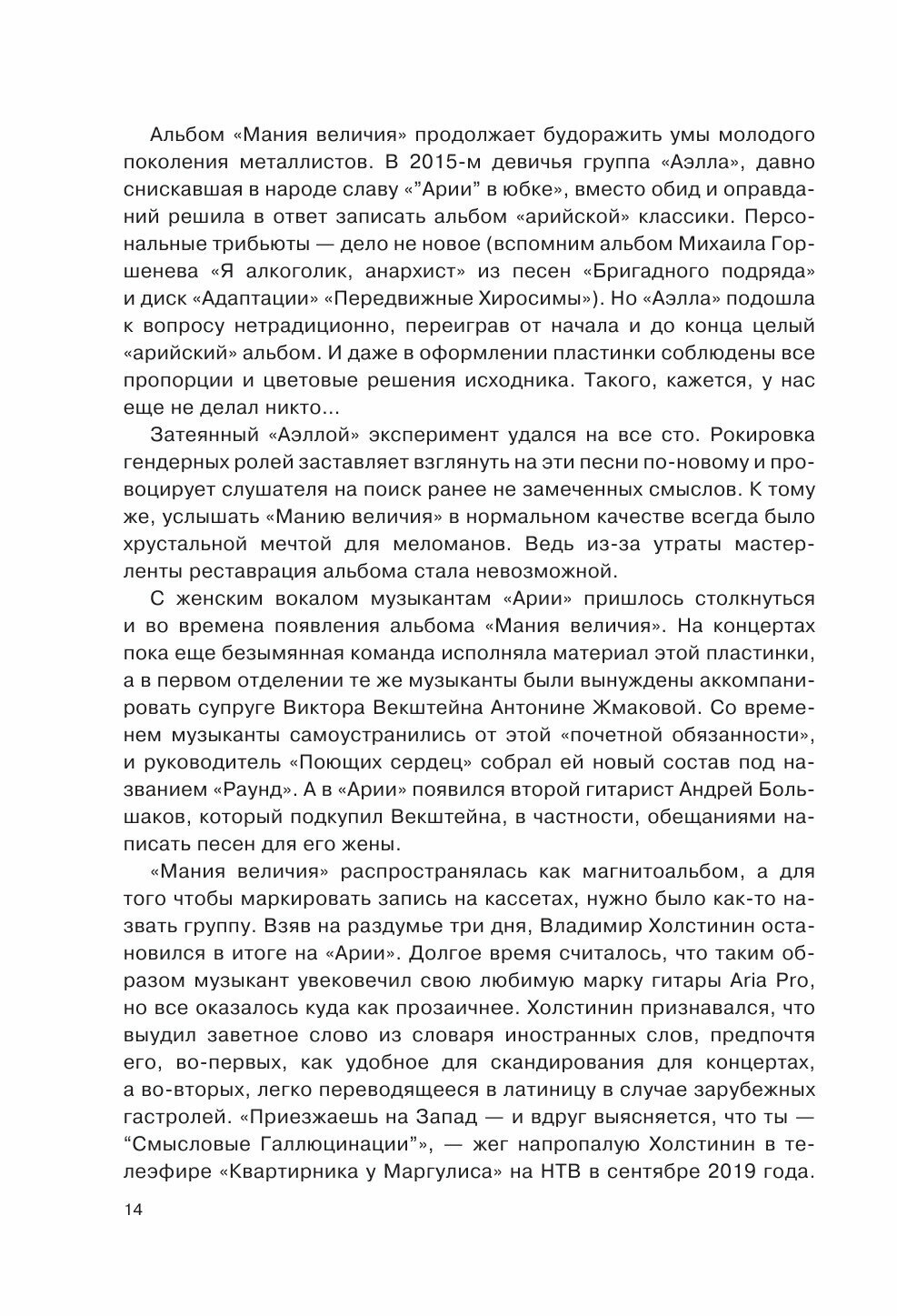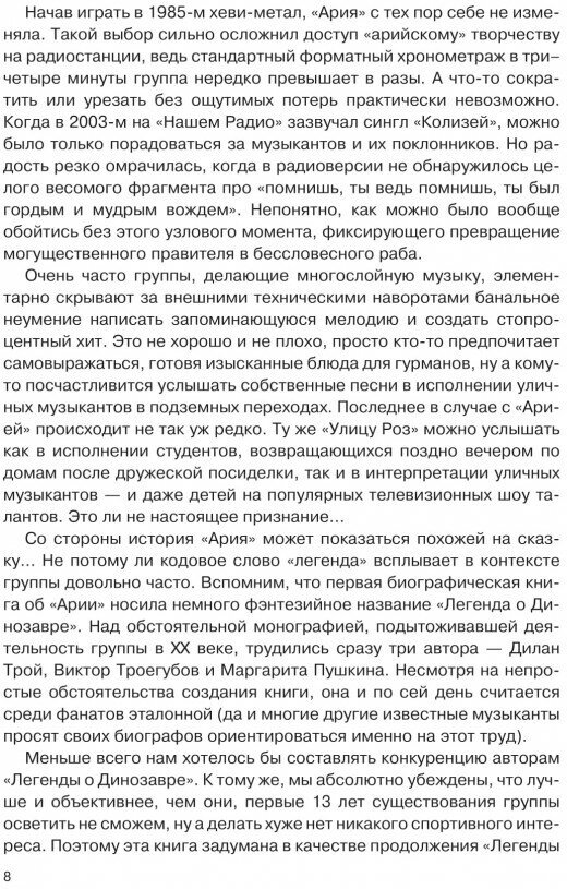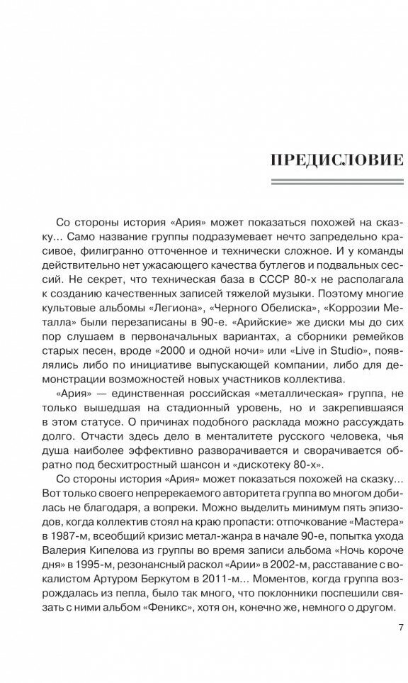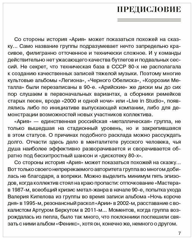 «Со стороны история “Арии” может показаться похожей на сказку…» — с таких слов начинается книга о самой известной российской «металлической» группе. Проследив все основные вехи «арийской» истории глазами самих участников легендарного коллектива, вы сможете убедиться сами — так это или нет. Их великолепный подробный рассказ, убийственно точные характеристики и неистощимое чувство юмора наглядно продемонстрируют, как и почему группа «Ария» достигла такой вершины, на которую никто из представителей отечественного хеви-метала никогда не забирался и вряд ли уже заберется.