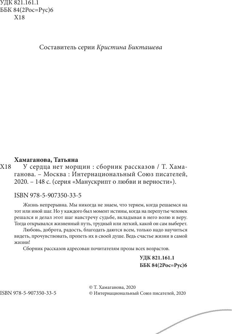 Книга: У сердца нет морщин (Татьяна Хамаганова); "Издательство "Интернационального союза писателей", 2020