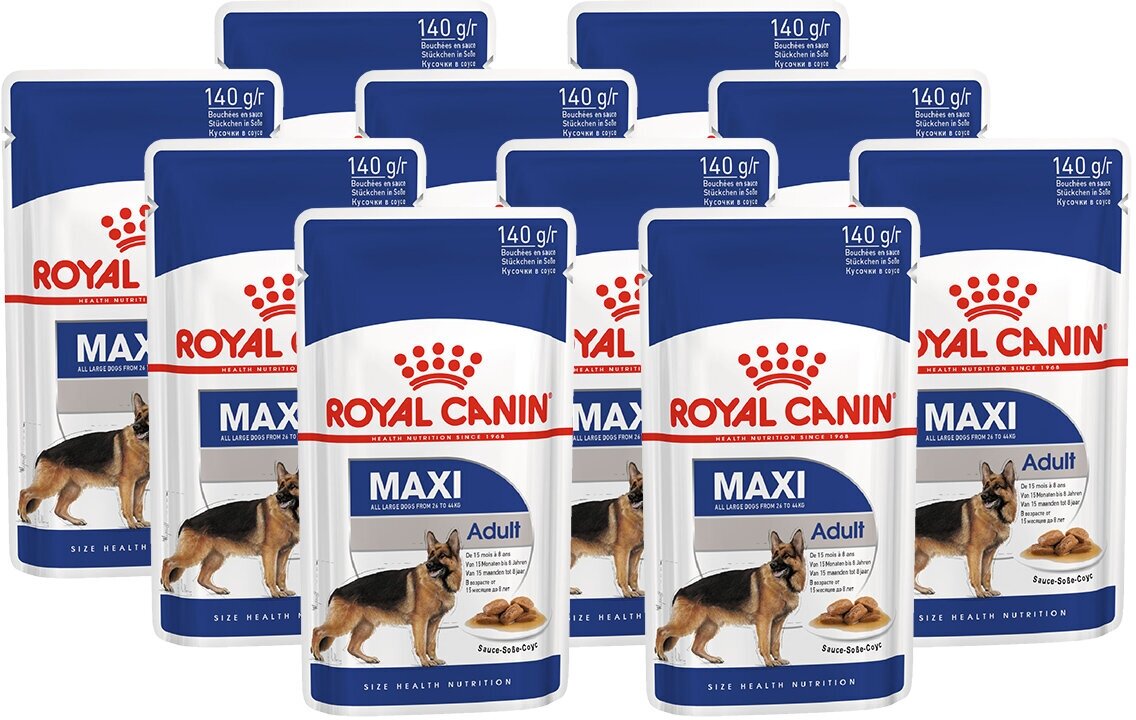 Сервис сравнения цен СкидкаГИД предлагает сравнить цены на товар «Корм для собак Royal Canin Maxi Adult кусочки в соусе 140г»