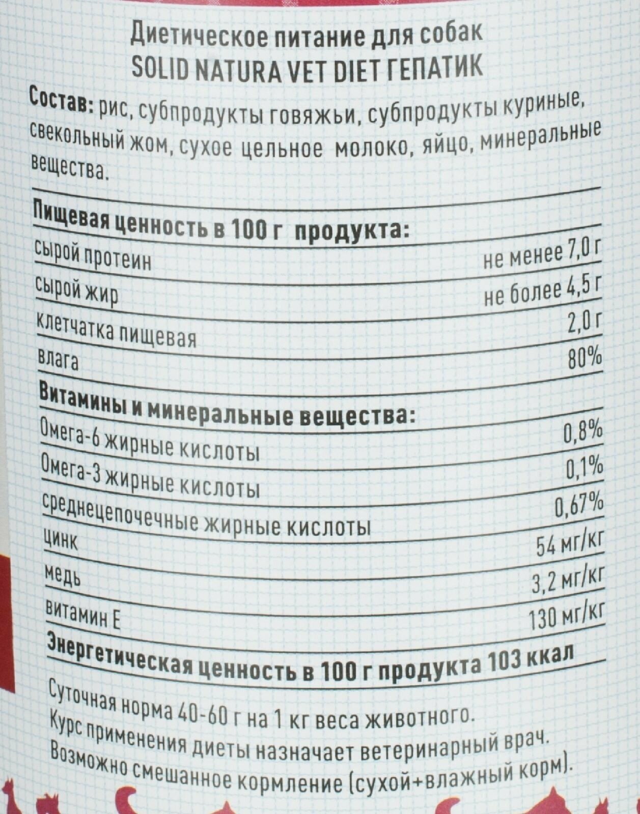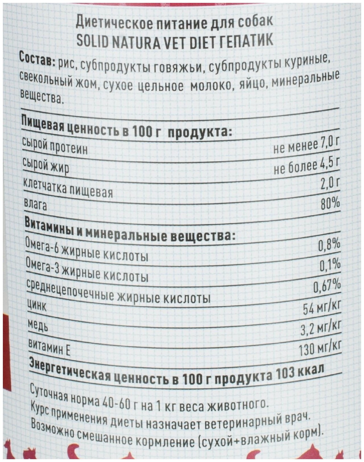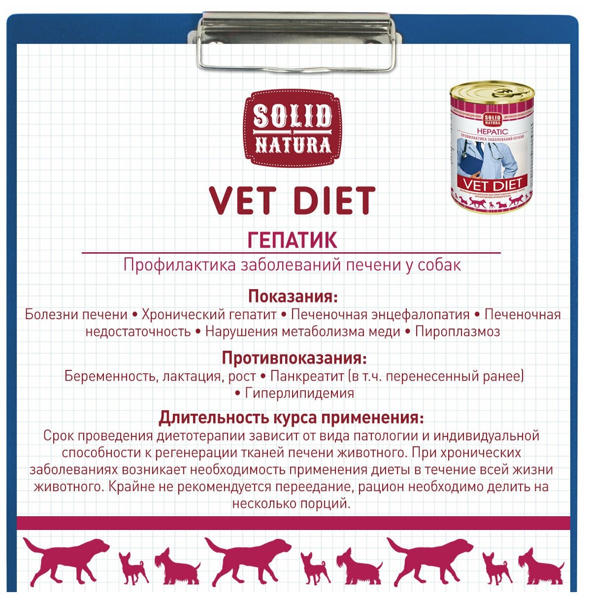 Solid Natura VET Hepatic. Влажный диетический корм Солид Натура предназначен для собак всех пород и возрастов при нарушениях функции печени. По ингредиентному составу относится к кормам суперпремиум класса.