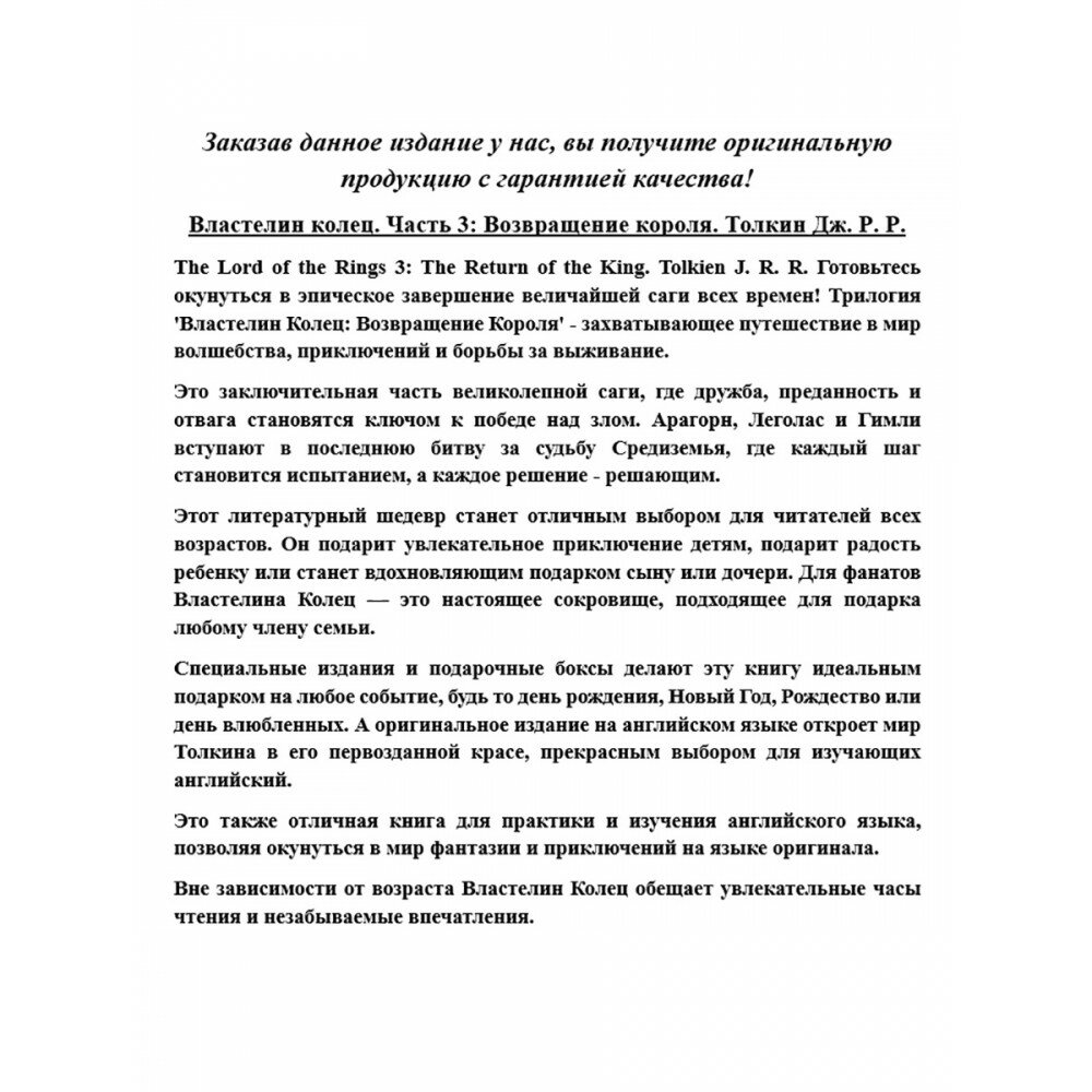 На сегодняшний день товар «Книга: The Return of the King (Джон Р. Р. Толкин / Толкин Джон Рональд Руэл / Джон Толкин / Джон Толкиен / Джон Рональд Руэл Толкин); HarperCollins Publishers, 2020» можно купить с кешбеком в 1 магазине: Читай-город