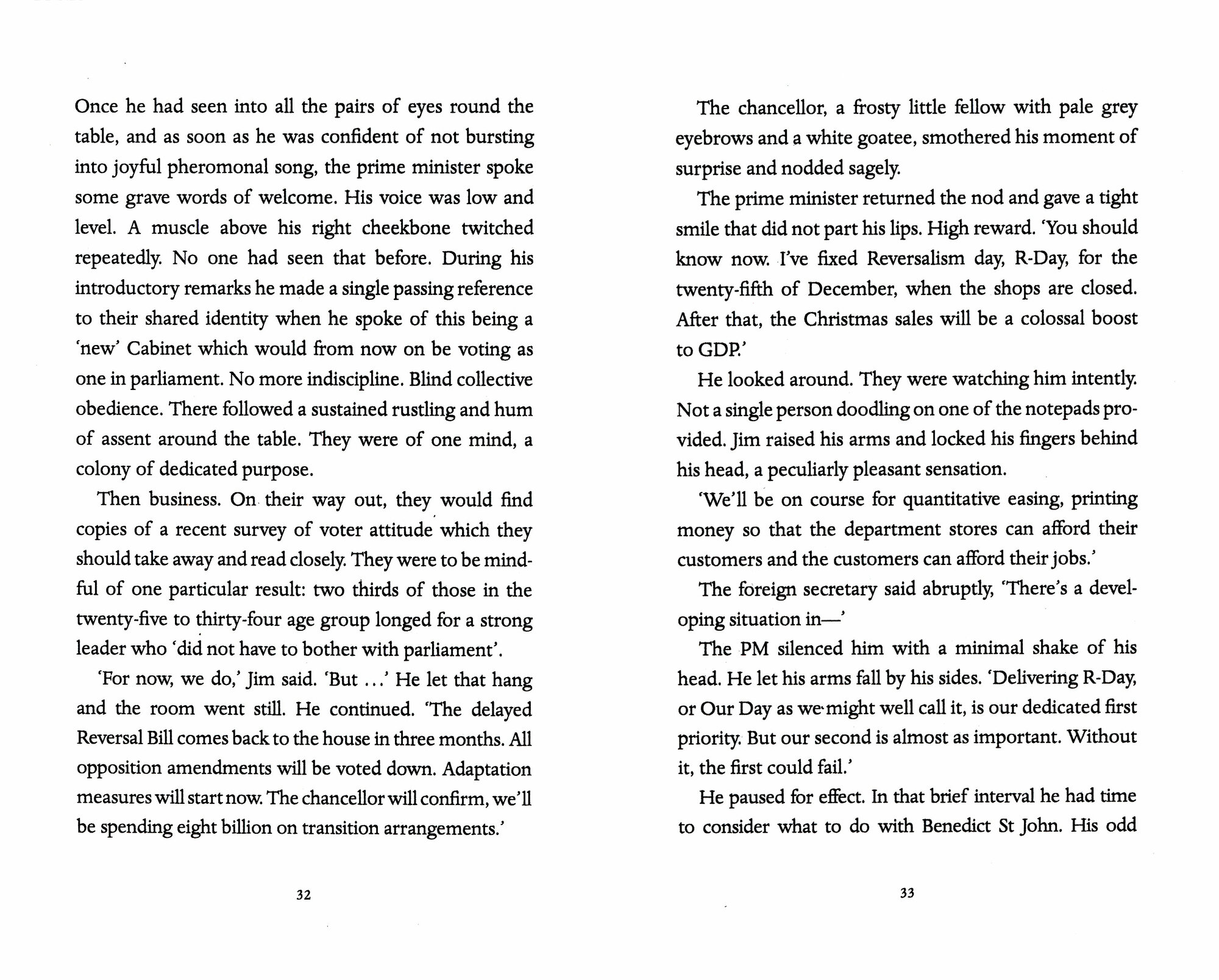 Jim Sams has undergone a metamorphosis. In his previous life he was ignored or loathed, but in his new incarnation he is the most powerful man in Britain – and it is his mission to carry out the will of the people. Nothing must get in his way: not the opposition, nor the dissenters within his own party. Not even the rules of parliamentary democracy.