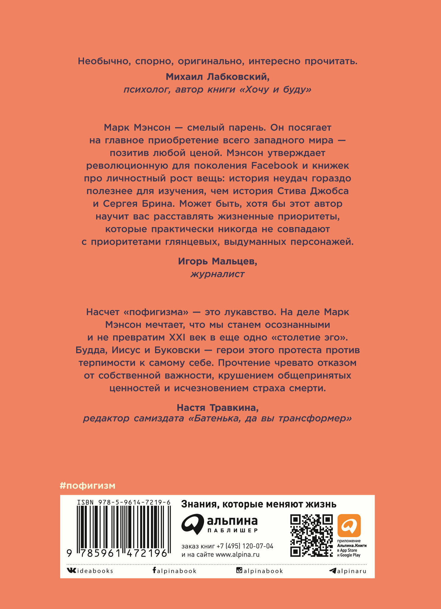 Тонкое искусство пофигизма: Парадоксальный способ жить счастливо (Мэнсон Марк); Альпина Паблишер, 2019