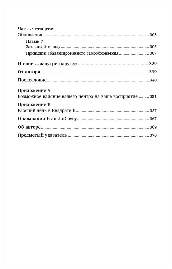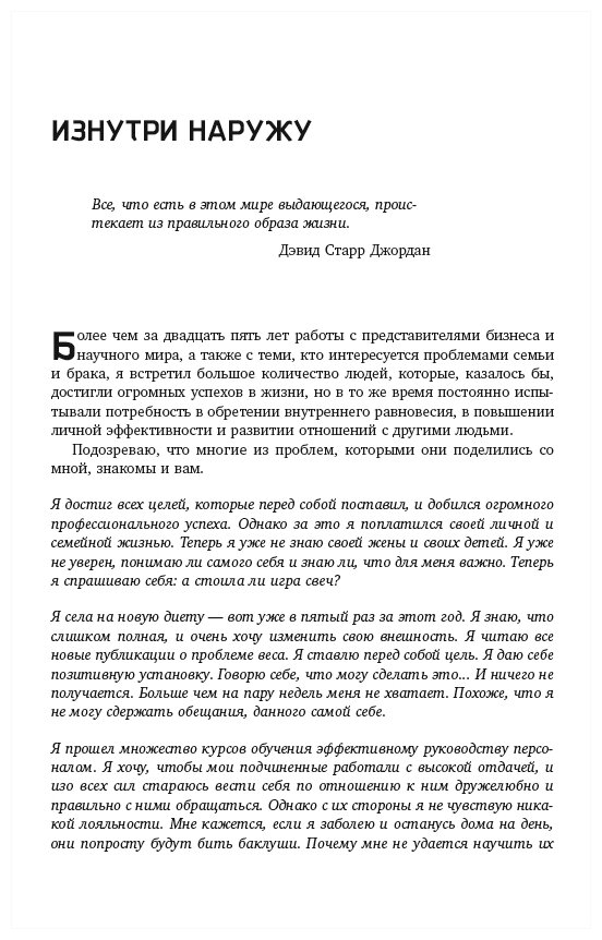 .О чем эта книга? Во-первых, эта книга излагает системный подход к определению жизненных целей, приоритетов человека. Эти цели у всех разные, но книга помогает понять себя и четко сформулировать жизненные цели. Во-вторых, книга показывает, как достигать этих целей. И в-третьих, книга показывает, как каждый человек может стать лучше. Причем речь идет не об изменении имиджа, а о настоящих изменениях, самосовершенствовании по сути. Книга не дает простых решений и не обещает мгновенных чудес. Любые позитивные изменения требуют времени, работы и упорства