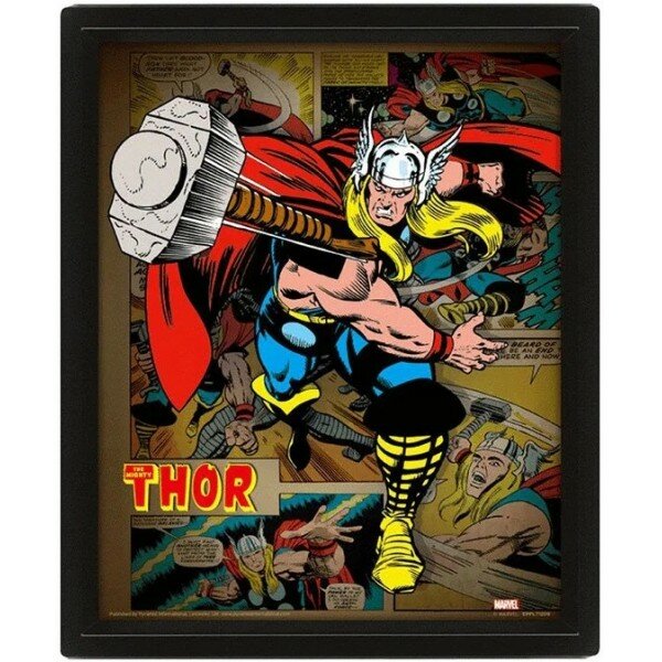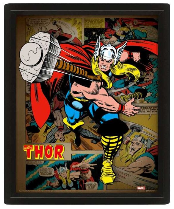 На плакате Pyramid изображён разъярённый супергерой Тор, метнувший свой верный Мьёльнир в невидимого врага. А благодаря 3D-эффекту кажется, что молот летит прямо в сторону наблюдателя! Эффектный постер заинтересует поклонников вселенной Marvel. история из комиксов Тор был сыном верховного бога Одина и Геи. Он жил в Асгарде, много тренировался и и снискал славу могучего воина. Но кроме благородства ему были свойственны ещё и гордыня и эгоистичность, из-за которых он иногда забывался и причинял всякие неудобства жителям Асгарда. Желая преподать Тору урок, Один создал для него людское тело и отправил на Землю, предварительно стерев память и лишив сверхспособностей.