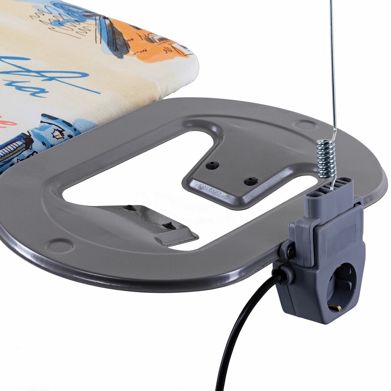 Гладильная доска Welle Capella предназначена для ухода за одеждой и постельным бельём. надёжная конструкцияРабочая площадь составляет 120 х 42 см, её достаточно для того, чтобы разложить даже объёмные вещи. Есть подставка для утюга, на которой он будет остывать. Предусмотрена встроенная розетка и удлинитель, поэтому модель можно поставить в любом удобном месте. Рельефные накладки на ножках защищают от скольжения и механического повреждения напольного покрытия.удобство И комфортВ комплекте идёт чехол из 100% хлопка, который не пригорает, не накапливает статическое электричество и позволяет подошве легко скользить по поверхности. Имеется фиксатор для кабеля, поэтому он не будет мешать в процессе. Доска складывается одним движением, что обеспечивает лёгкость хранения.