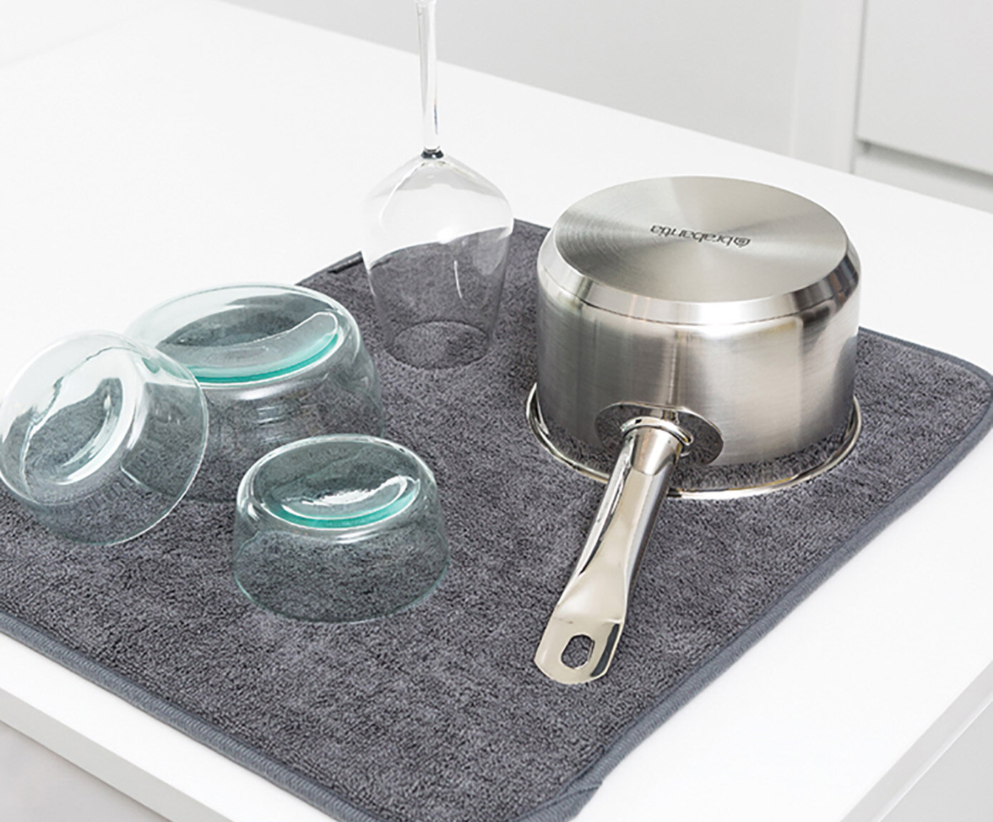 Если бы под этот коврик найти низкое корытце из силикона, было бы идеально. Или хотя бы коврик снизу покрыли тонким слоем силикона, тоже было бы не плохо. А так, при большом количестве посуды намокает стол. Вода не растекается, но стол мокрый.