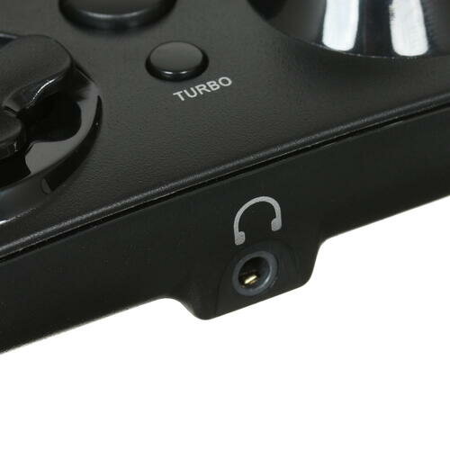- Разъем 3,5мм под гарнитуру. Позволяет подключать любую PS4-совместимую гарнитуру и использовать как стереодинамики, так и микрофон для связи. При желании гарнитуру можно отключить одной кнопкой, расположенной на задней стороне геймпада.