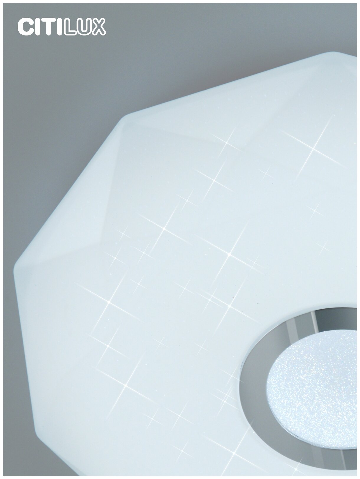 Люстра Citilux CL713A80G серии Диамант Смарт. Подчеркнет стиль помещения. Высота 8.5 cm. Диаметр 59 cm Параметры пылевлагозащиты IP — 20. Плафон полимерный цвета хром, а материал/цвет арматуры металл/белый. Идеально подходит для детской, для спальни, для гостиной, для прихожей. Страна происхождения бренда — Дания.