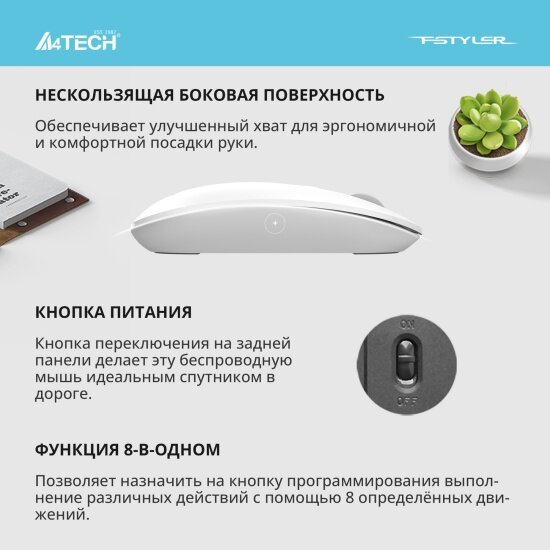 Мышь беспроводная A4Tech Fstyler FG20 White