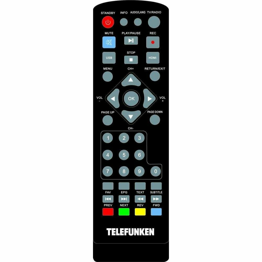 Телевизионный приемник черного цветаTELEFUNKEN с декодируемым сигналом DVB-T2/T and DVB-C (прием открытых каналов) поддерживает видео в разрешении 720p, 1080i, 1080p (Full HD). Приемник поддерживает форматы: AVI, MKV, MOV, TS, VOB, MP4, MPEG, DAT, JPEG, BMP, SRT, JPG, а также видео кодексы: MPEG2, MPEG4, H.264 SD, HD, MP, HP L4.1. Устройство может воспроизводить аудио с поддержкой кодеков MPEG1, MPEG2, 32/44.1/48KHz USB 2.0 (носители до 1TB). Телевизионный приемник поддерживает файловые системы FAT/FAT32/NTFS. С помощью устройства можно записать интересную передачу или фильм, выставив таймер в нужное время. Приемник наделен функциями Time Shift (сдвиг по времени), телегид EPG, TeleText, Subtitle, Fav Group. Экранное меню отображается на русском и английском языках. Приемник имеет встроенную опциональную поддержку Wi-Fi: IPTV (доступ к встроенным плей листам, с более 2000 тысячами шедевров мирового кинематографа, мультфильмов и пр.), YouTube, погода, онлайн кинотеатр.