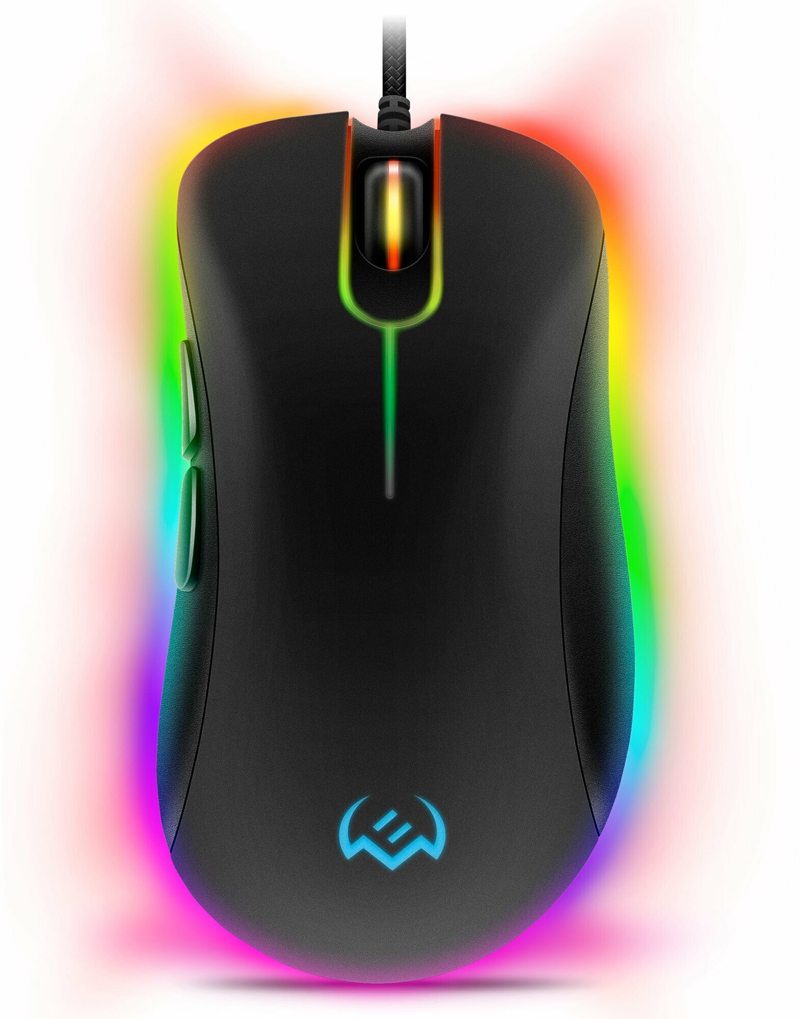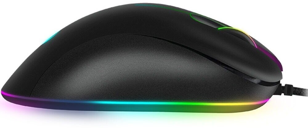 Довольно яркая мышка с подсветкой RGB, можно настроить под себя в соответствии со своими функциями. Что удивило, есть кнопки даже на нижней части мышки есть дополнительные кнопки для подсветки и смены под себя DPI, не нужно искать в компе, чтобы настроить скорость мыши под себя. Так же сбоку есть 2 кнопки, можно на них настроить бинд, для любой игры.