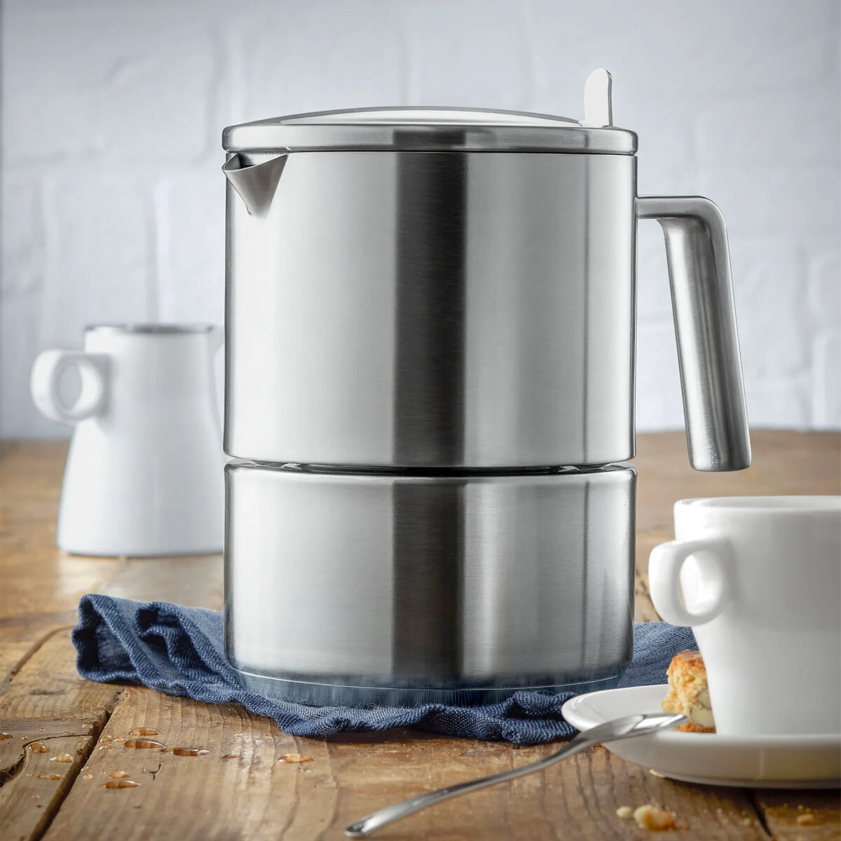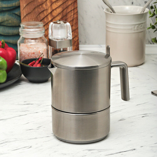 Приготовление эспрессо на плите это целое искусство. Гейзерная кофеварка WMF создана специально для того, чтобы сделать этот процесс наиболее простым и приятным. Кофеварка состоит из трех частей, которые надежно соединяются между собой: нижняя емкость для воды, средняя сито для кофе, верхняя кофейник для эспрессо.