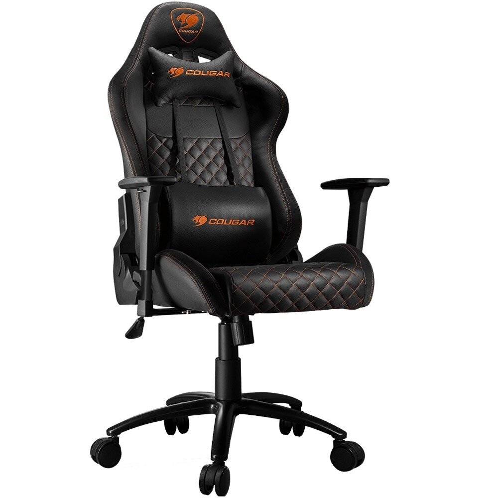 Компьютерное кресло Cougar Rampart создано для длительных игровых сражений. Высокая спинка с боковыми поддержками, дополнительные подушки для поясницы и шеи обеспечат правильное положение позвоночника. Обивка сделана из прочной и устойчивой к загрязнениям экокожи. Рама выполнена из стали. Максимальная нагрузка — 120 кг. Высота сиденья регулируется с помощью механизма «Газлифт» четвертого класса. Он дополнительно защищен железным кожухом. Спинка раскладывается на 170°. С помощью специальных ручек можно настраивать качание: уменьшать и увеличивать сопротивление, блокировать его. Положение подлокотников меняется под разные отделы рук. Элементы двигаются вперед, назад, вверх, вниз, вправо и влево.
