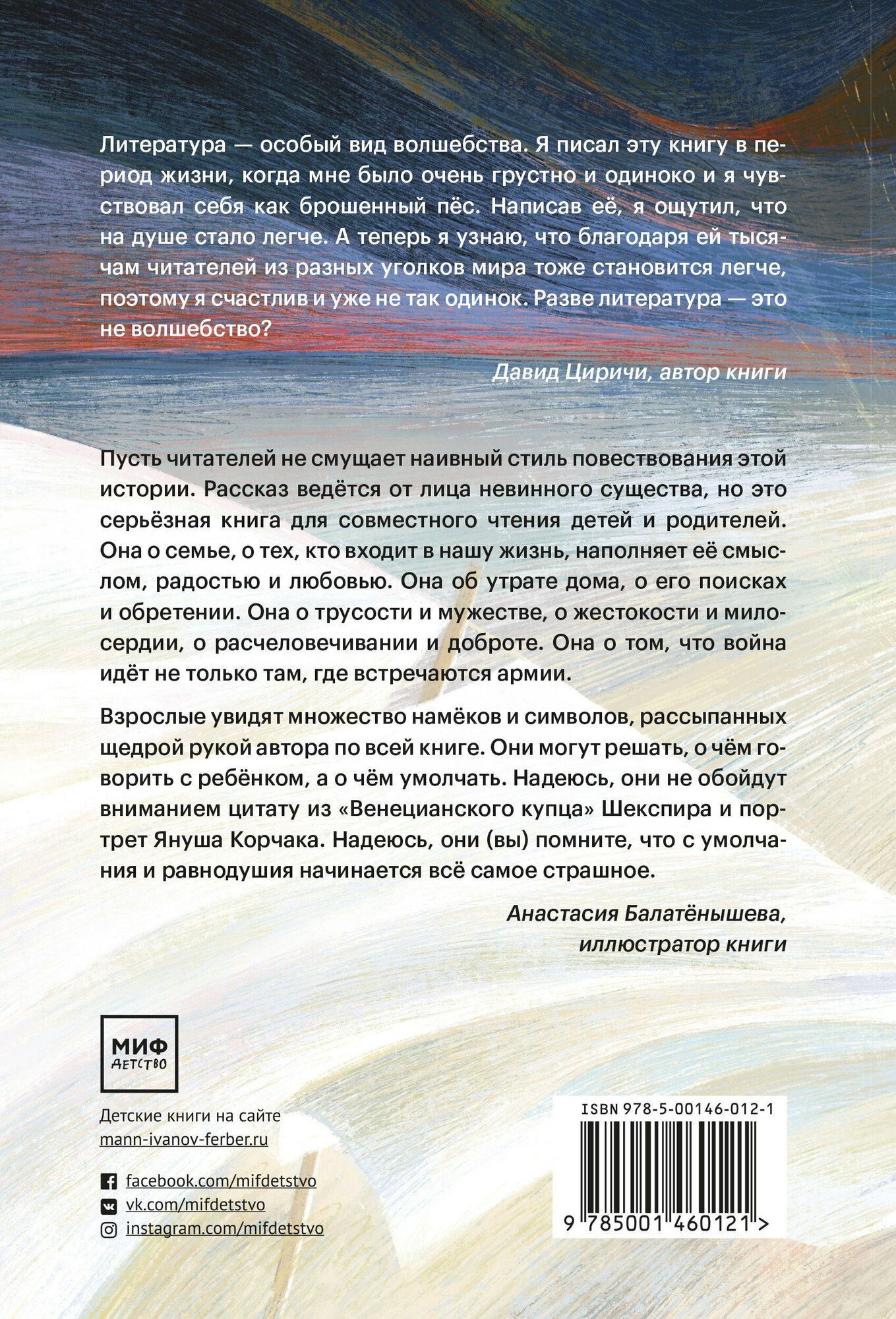 Эта история, рассказанная от лица пса, не только о войне. Она о многом: о дружбе и выручке, о надежде и поиске дома, об ответственности за свои поступки, о смелости, о преданности и предательстве, о свободе и неволе. Каждый найдет в этой книге что-то сокровенное и личное.