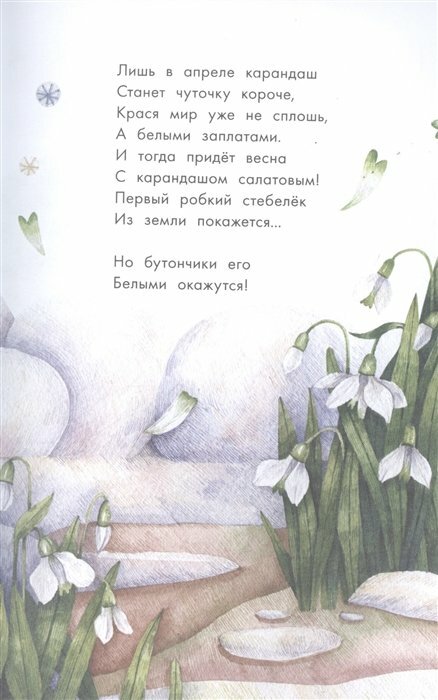 Книга очень понравилась. Она толстенькая – много стихов, много цветов, много прекрасных иллюстраций. С удовольствием с детьми читаем и ждем весну и цветы. На окне скоро зацветет гиацинт. Мастер-класс по его выращиванию есть в книге, наряду с еще несколькими разворотами с разнообразной полезной информацией о растениях.