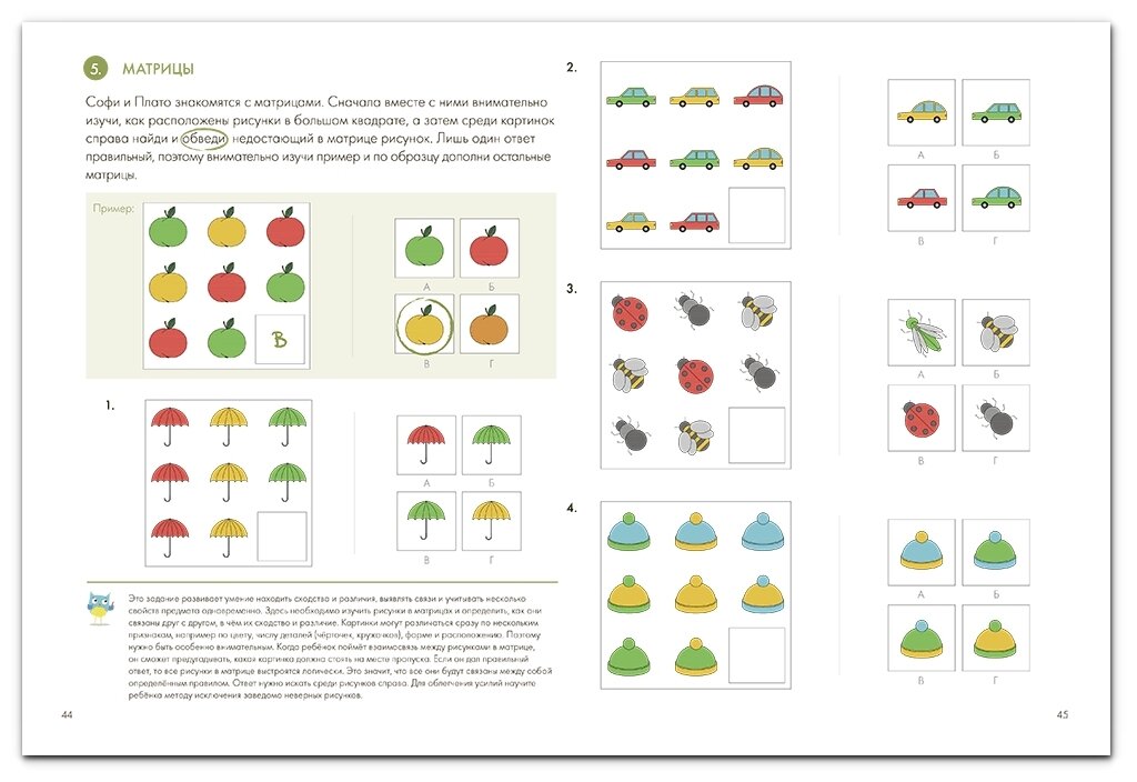 Эта книга для детей, которые любят разгадывать головоломки. Специально для них профессиональные авторы разработали интересные задания. Они развивают не только внимательность и память, но и умственные и аналитические способности, логическое, творческое и пространственное мышление.Всю дорогу — от начала до конца — ребёнка будут сопровождать совята Плато и Софи. Они объяснят, как решать головоломку и какие качества она развивает.Фишки книги:В книге собрано 560 головоломок;Книга нацелена на развитие умственных способностей ребенка: навыки сравнения, анализа, синтеза, абстракции, конкретизации, индукции и дедукции;Задания оттачивают внимание и память;Все упражнения разные;Красочные иллюстрации;Головоломки усложняются по мере прохождения;В конце книги есть ответы на задания.Задачки из этой книги развивают:внимательность и память;умственные и аналитические способности;логическое и творческое мышление;пространственное и дивергентное мышление;оперативную память.Для кого эта книга:Для всех любителей головоломок.