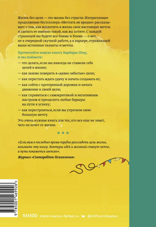 На сегодняшний день товар «Книга: О чем мечтать (Барбара Шер); МИФ, 2023» можно купить с кешбеком в 2 магазинах: Издательство «МИФ», Яндекс.Маркет