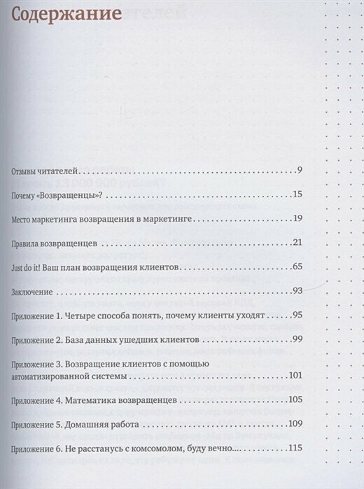 Рабочая тетрадь для организации работы по возвращению ваших клиентов Что это? Это новая книга-тетрадь, продолжение серии, открытой летом 2012 года рабочей тетрадью "Точки контакта". Как с ней работать? Так же, как и с "Точками контакта". Вы читаете теорию и выполняете задания на полях. Затем собираете все мысли из книги и собственные идеи, разрабатываете план по возвращению клиентов - и действуете! Для чего? Сегодня многие компании уже хорошо умеют привлекать клиентов, учатся их удерживать, вставая на путь клиентоориентированности. А вот возвращают ушедших покупателей - единицы! В этой книге вы найдете 13 полезных правил, которые вам нужно знать для организации системной и эффективной работы по возвращению клиентов. А также пошаговый алгоритм, план действий, который необходимо запустить в компании, чтобы полученные знания заработали на практике. Для кого? Для предпринимателей, руководителей, начальников отдела продаж и маркетеров. От автора Тема интересна тем, что я не встречал ни одной посвященной этому вопросу книги на русском языке. 90% книг - о том, как привлечь клиентов и как с ними работать. 10% книг - о том, как удерживать клиентов. И ни одной о том, как вернуть клиентов. Удивительно. Как будто ничего подобного не происходит ни с одной компанией. И я взялся за эту тему. Почему "Возвращенцы"? Так можно назвать и тех, кого вы смогли вернуть в свой клиентский пул. Так можно назвать и тех, кто занимается этим вопросом. Универсальный термин. Да и придумать хорошее название в одно слово непросто. Но подзаголовок книги наилучшим образом отражает ее суть: "Как вернуть потерянных клиентов". Книга небольшая, но ведь и "Позиционирование" Джека Траута и Эла Райса тоже когда-то было статьей в Advertising Age. К сожалению, Advertising Age у нас не выходит, наш материал оказался слишком объемным, чтобы стать статьей в журнале, а то, что книга получилась небольшая, на наш взгляд, только плюс. Быстро прочитал (за пару часов успеет любой!), быстро применил, быстро получил нужный результат. Мне лично все меньше нравятся книги, в которых больше трех сотен страниц. Пока дочитаю до конца, все забуду. Я даже предложил коллегам из издательства начать книгой "Точки контакта" новую серию с говорящим названием "Закрываем тему". Прочитал книгу из этой серии по узкой теме - и окончательно выяснил для себя какой-то вопрос (а таких в бизнесе сотни). Мне вообще кажется, что в бизнесе несколько сотен достаточно стандартных ситуаций. И если знать, как в них действовать, по какому алгоритму или модели работать, то бизнес становится намного проще. Если бы подобная серия существовала, "Возвращенцы" в нее точно отлично бы вписались. Как и "Точки контакта", это максимально полезная книга. Верните хотя бы одного клиента - и вы многократно (тысячекратно! и это не преувеличение для тех, кто работает на рынке b2b) окупите стоимость книги. Этого мы с вам с Анной и желаем. Скоро вы узнаете, что делать и как делать - вам останется взять и сделать. Это не так просто (маркетинг, как я с каждым годом все больше понимаю, вообще штука непростая), поэтому наше искреннее пожелание вам: удачи! Игорь Манн 3-е издание.
