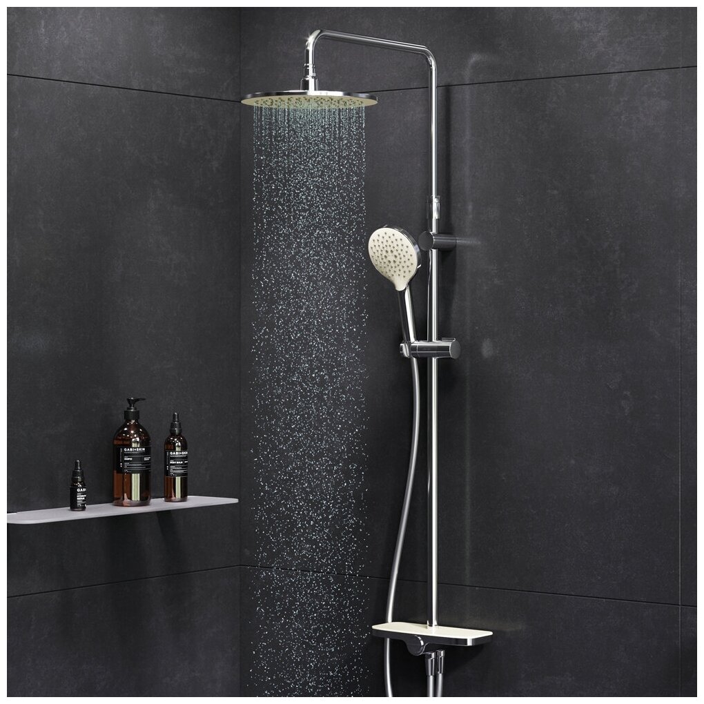 | Комплектация | Душевой шланг, душевая лейка, душевая стойка, верхний душ, полочка, держатель для душа, крепления, инструкция |