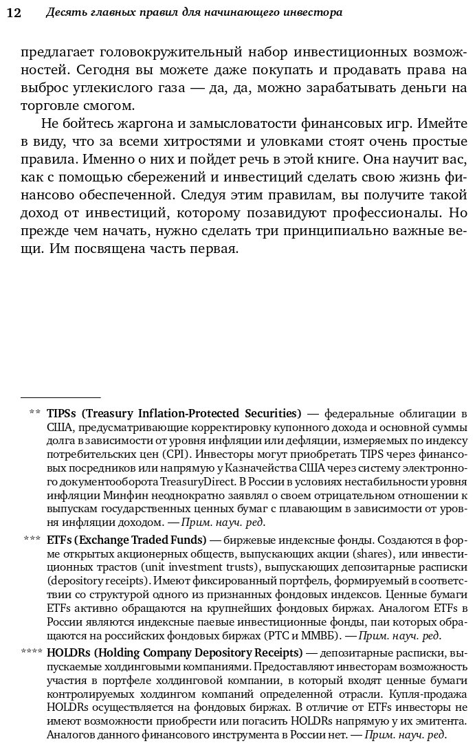 Правила и в правду для начинающих инвесторов. Почему-то набирая начальный опыт, кажется, что можно их нарушать, но потом все равно сам приходишь к этим же правилам. А фондовый рынок тебя съест, если не будешь придерживаться жестких ограничений. Одна из первых моих книг в области финансов. Читается легко, быстро и доступно. Поэтому могу ее посоветовать всем начинающим биржевикам.