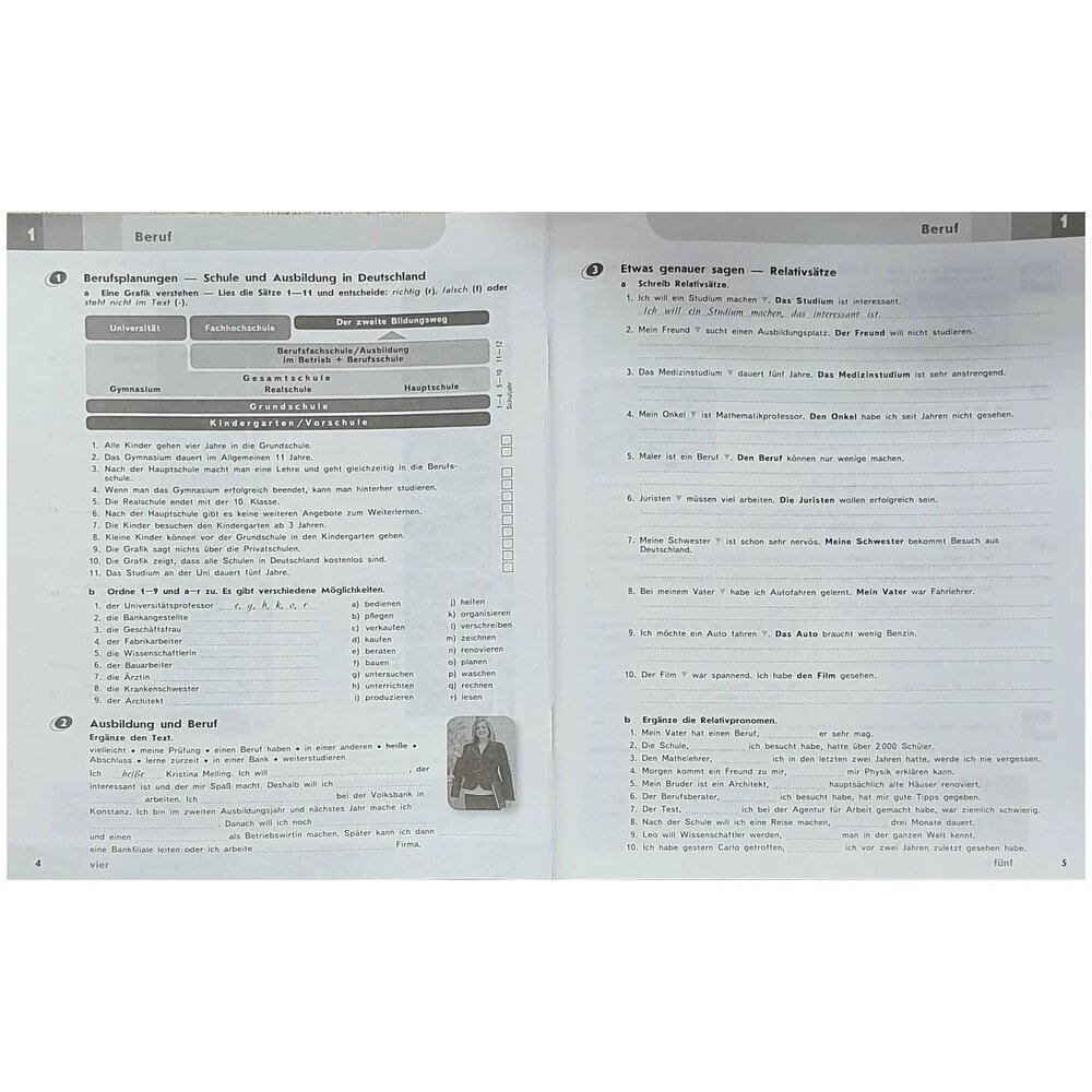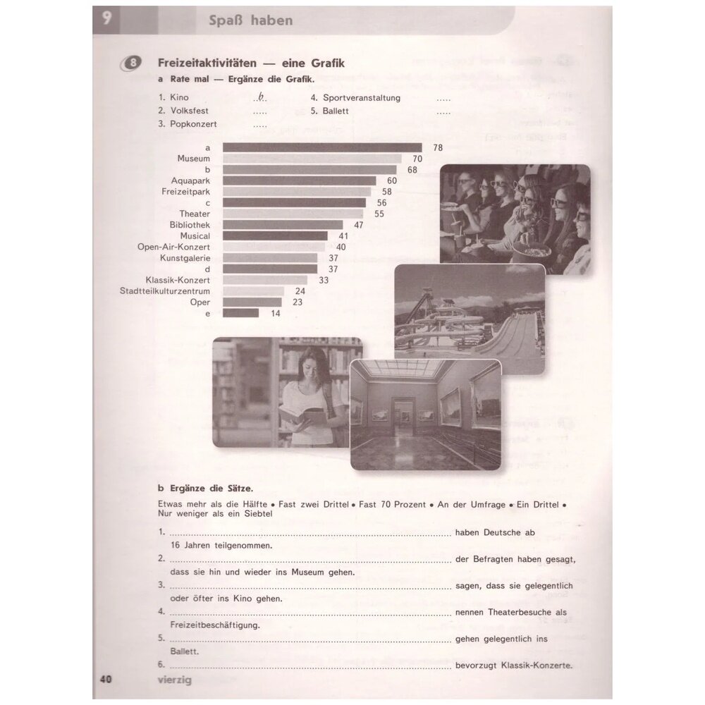Сам когда то учил немецкий по этой тетради и хотелось бы сказать что спорное у меня о ней сложилось мнение. Хотя программа старается развлекать девятиклассников как может. Где то современные гаджеты, где то моменты из известных фильмов, но всё равно учится по этой тетради крайне скучно. Но в её защиту можно сказать, что многие задания творческие (нужно самому решать что писать) и разнообразные. После каждой темы слова перевод к которым нужно записывать, это крайне неудобно, нудно и лучше бы дали в конце тетради полноценный словарь.