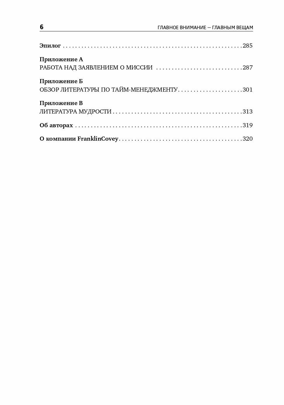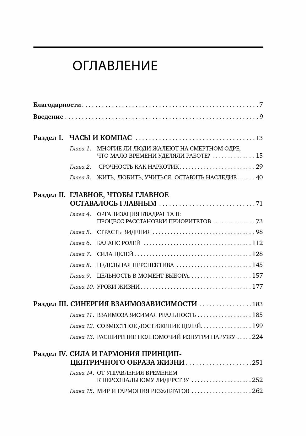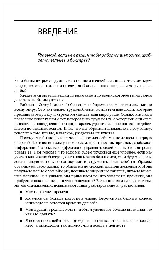 Как организовать свое время так, чтобы все успеть? Рецепт авторов кажется парадоксальным: далеко не все нужно успевать. Какой смысл как можно быстрее карабкаться вверх по лестнице успеха, если она приставлена не к той стене? Развивая идеи знаменитого бестселлера "Семь навыков высокоэффективных людей", авторы объявляют прежние концепции и инструменты тайм-менеджмента несостоятельными. Они предлагают поистине революционные подходы к организации времени, помогающие преодолеть наркотическую зависимость от срочности и делать в первую очередь самые важные дела.