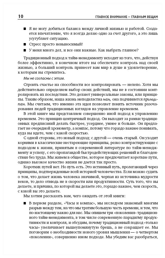 Рекомендую книгу Стивена Кови «Главное внимание главным вещам». Автор дает рекомендации, которые могут расходиться с классическим тайм - менеджментом. Строить счастье на способности все контролировать – нелепо. Мы определяем выбор своих действий, но мы не в состоянии контролировать их последствия. Это делают универсальные законы (принципы). Таким образом, наша жизнь неподвластна нам, она подчиняется принципам. В данной книге автор представляет совершенно иной подход к управлению временем.
