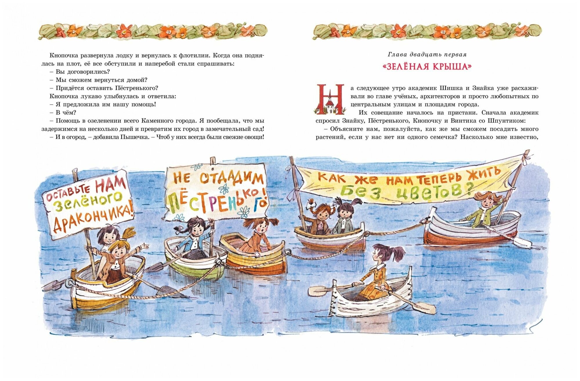 Как же много изданий Незнайки, что когда столкнулась с выбором книги в домашнюю библиотеку, просто растерялась( но выбор остановила на трилогии с иллюстрациями В. Челака, и когда получила заказ восхищению не было предела! Но самое главное, детям понравилось читать и рассматривать шикарные иллюстрации! В детстве у меня не было новых приключений Незнайки, поэтому была приятно удивлена и конечно же стала искать продолжение в том же оформлении) мечты сбываются! Вот эта книга и всё тот же Незнайка! Думаю, сюжет будет не менее интересен юным читателям (книгу ещё не показывала), но точно знаю, что оформление получит отклик. Издание качественное, шикарная обложка с тиснением, белоснежные страницы и огромное количество картинок! Они на каждой странице, есть полностраничные, есть на весь разворот, не говоря уже о том, что сверху на страницах веселая цветочная окантовка) Невероятно, как художнику удаётся сделать героев такими живыми, яркими, запоминающимися! Однозначно книгу можно рекомендовать! А так, думайте сами, решайте сами ...