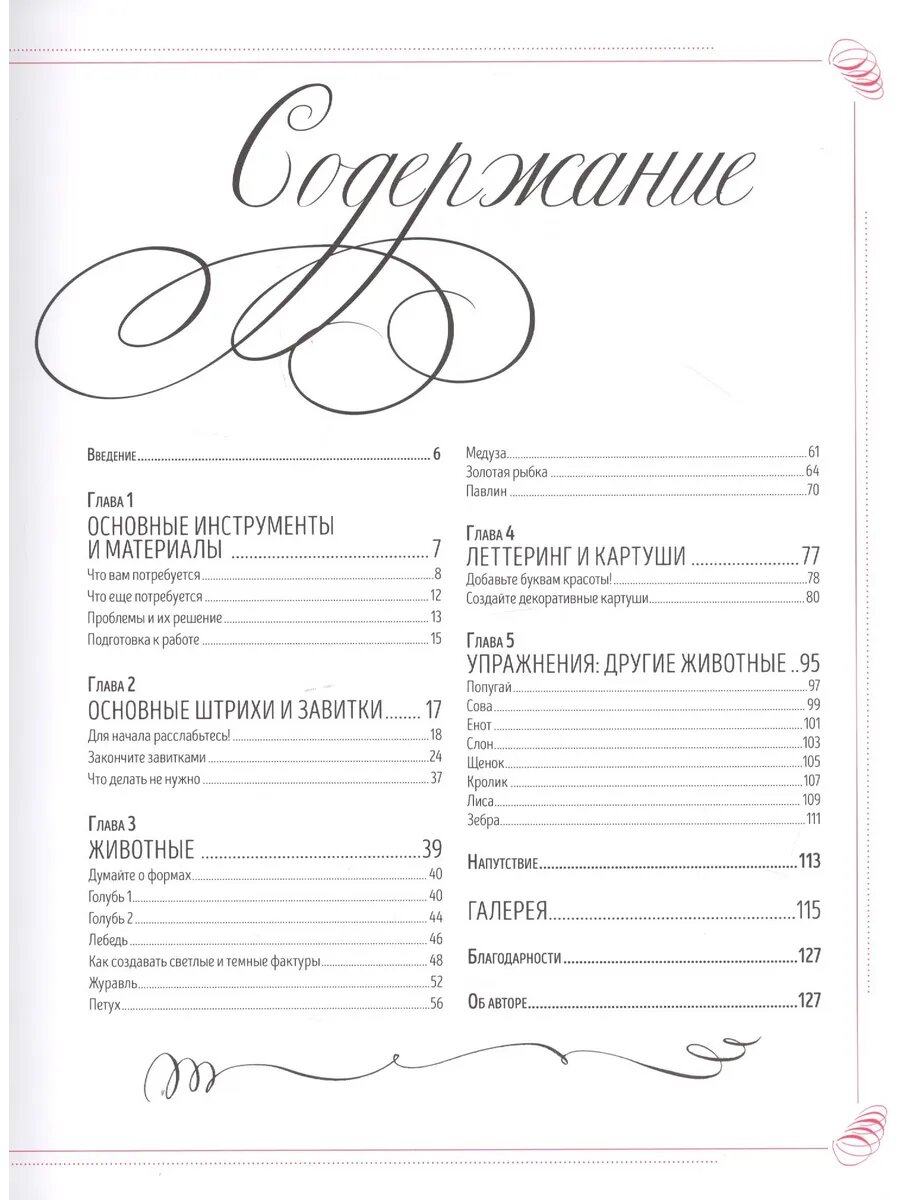 Классная книга дл тех, кто хочет научиться каллиграфическому рисунку. Книга начинается с подробного описания инструментов и материалов, которые понадобятся в ходе работы. Затем автор даёт базовые упражнения на постановку руки. И лишь разогрев руку, приступаем к сотворению красоты! Шин Лунг пошагово объясняет каждый рисунок-задание. В книге около 20 разнообразных схем птиц и животных. А также есть галерея работ автора для вдохновения и самостоятельного творчества.