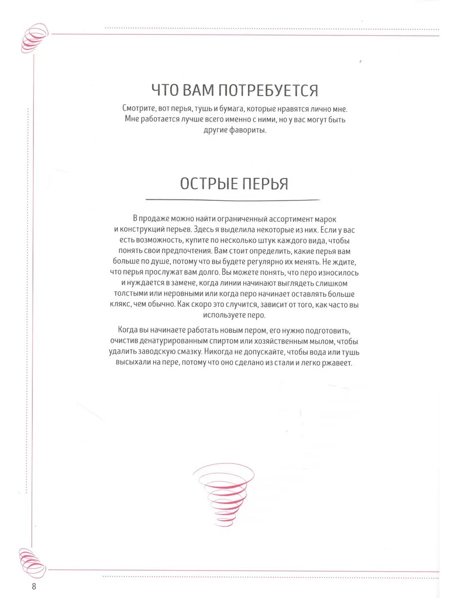 Книга подойдет и для тех, кто хочет научиться каллиграфии, так как содержит основы, начиная с выбора подходящих инструментов. И для тех, кто хочет развить свои каллиграфические умения в нечто большее, чем просто красивое написание текста. Дружелюбный стиль изложения, интересные упражнения, отличное качество печати, твердая обложка - хороший вариант подарка творческим натурам)