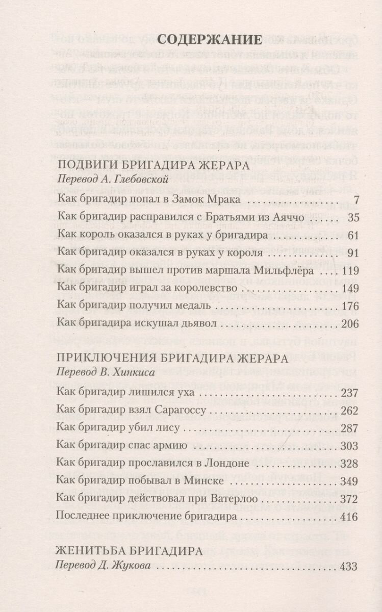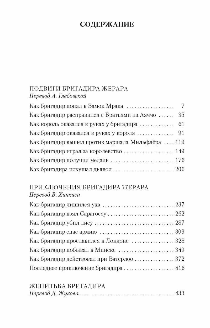 В настоящее издание вошли два сборника приключений о бригадире Жераре, а также рассказ "Женитьба бригадира". Сборник "Подвиги бригадира Жерара" представлен в новом переводе.