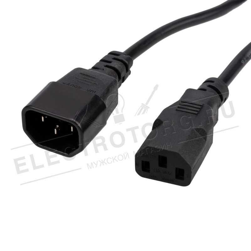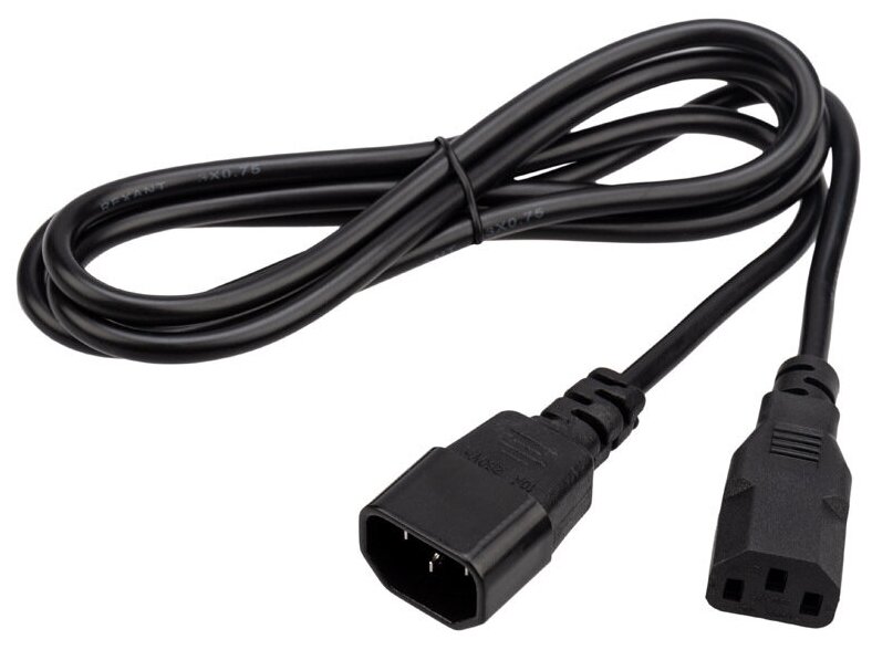 Сетевой шнур, гнездовой разъём- C13, штыревой разъём- C14 1.5 м REXANT предназначен для подключения монитора к ПК, удлинения имеющихся кабелей, подключения к блокам розеток C13 (обычно используются в серверных стойках для экономии места и международной стандартизации) и для подключения компьютерного оборудования к выходу ИБП (источник бесперебойного питания).