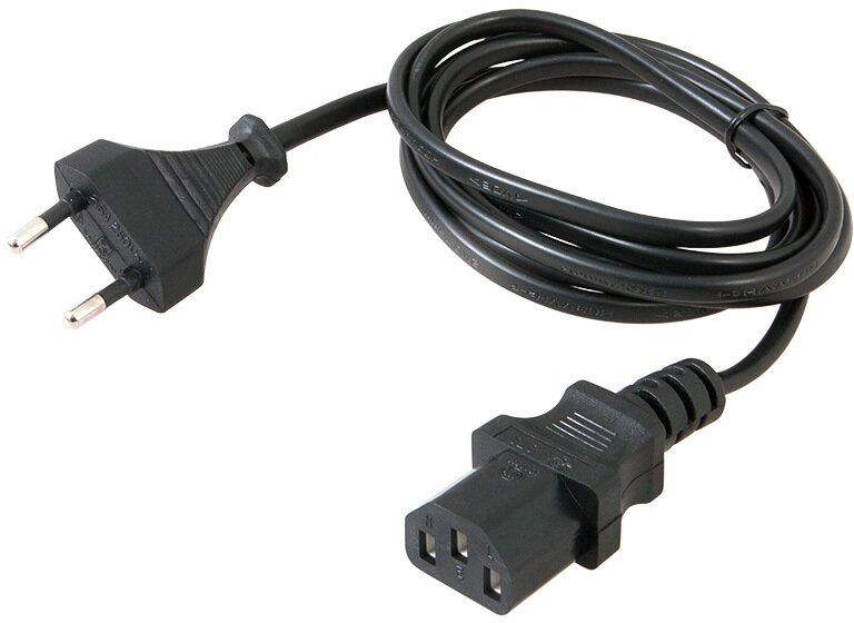 Шнур сетевой плоская вилка 0.75мм² 1.8М REXANT предназначен для подключения к сети переменного тока (AC) с напряжением 220B стационарных персональных компьютеров, мониторов, ИБП, принтеров и других периферийных устройств, имеющих штыревой разъём типа C14. Также шнур сетевой Евро (IEC cord) используются для питания многих видов электроприборов, например, усилителей для электронных музыкальных инструментов и профессионального звукового оборудования. Данный шнур IEC оснащен с одной стороны литой неразборной плоской вилкой (Евро), с другой литым гнездовым разъёмом C13 и двухжильным проводом с сечением жил 0.75мм².