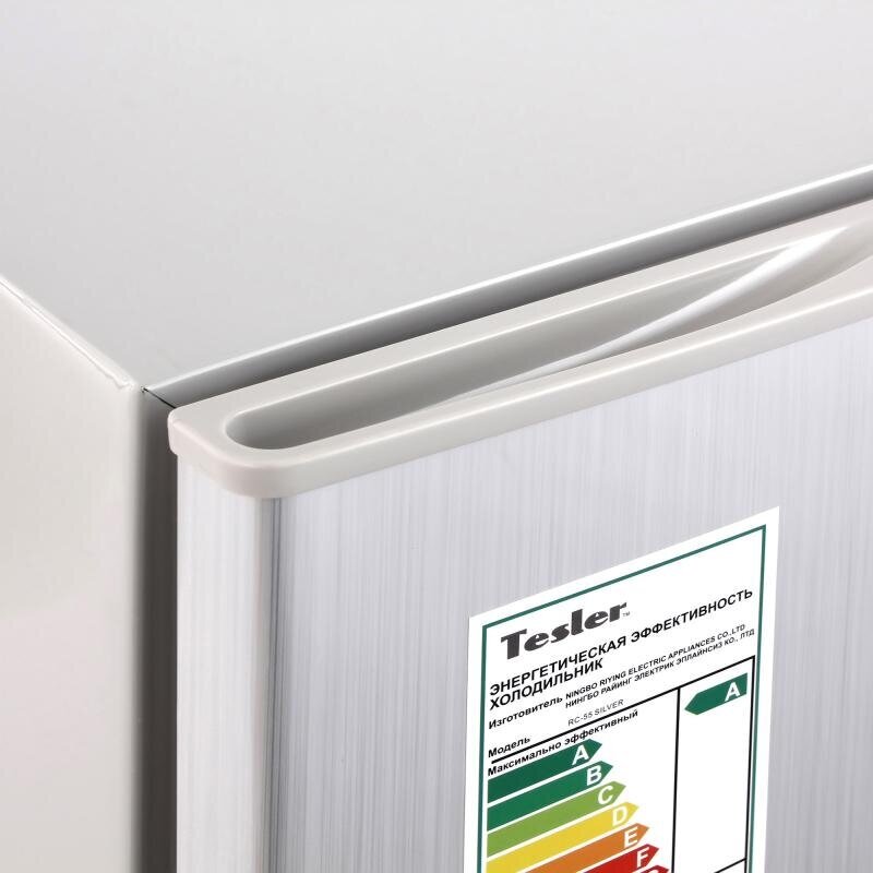 Компактный однокамерный холодильник от компании Tesler прекрасно подойдет для маленьких кухонь или офисов и дач. Этот серебристый минихолодильник, благодаря механическому управлению температурой очень прост в управлении, а также экономичен в энергопотреблении (класс А), мощность потребления 67 Вт, уровень шума 39 Дб. В этой модели используется хладоген типа R600A.
