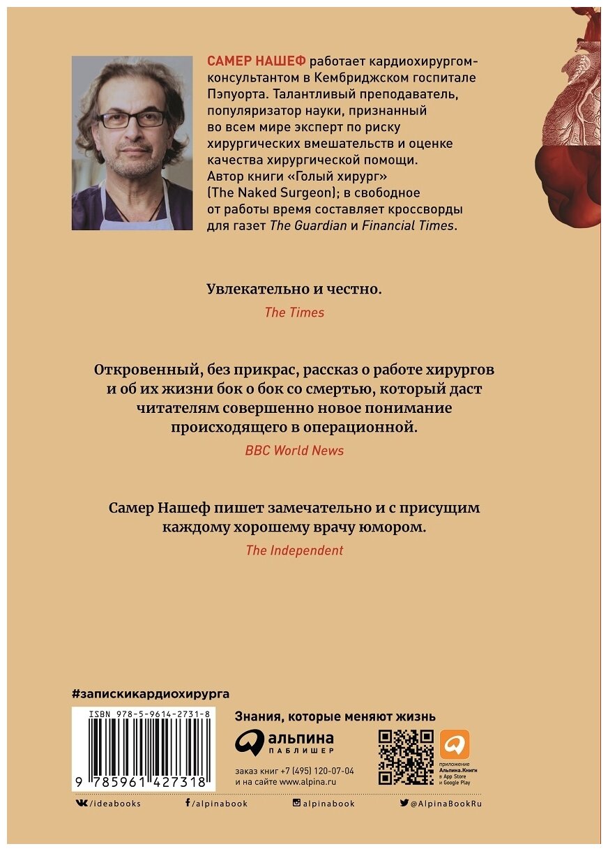 Всегда ли оперирующий хирург может предсказать исход сложной операции? Застрахован ли пациент от неприятных сюрпризов и последствий оперативного вмешательства в сердце? Перед вами необыкновенная книга практикующего британского кардиохирурга, в которой просто и понятно рассказано об устройстве человеческого сердца — его силе, уязвимости, особенностях и о том, как сложно его вылечить. Автор делится случаями из практики, в которой было немало выдающихся побед, досадных промахов и озарений. Опираясь на свой многолетний опыт и данные современных исследований сердечно-сосудистой системы и методов ее лечения, Самер Нашеф пишет о том, как сделать наши сердца сильнее и выносливее, риск хирургического вмешательства — ниже, а помощь специалистов — эффективнее.